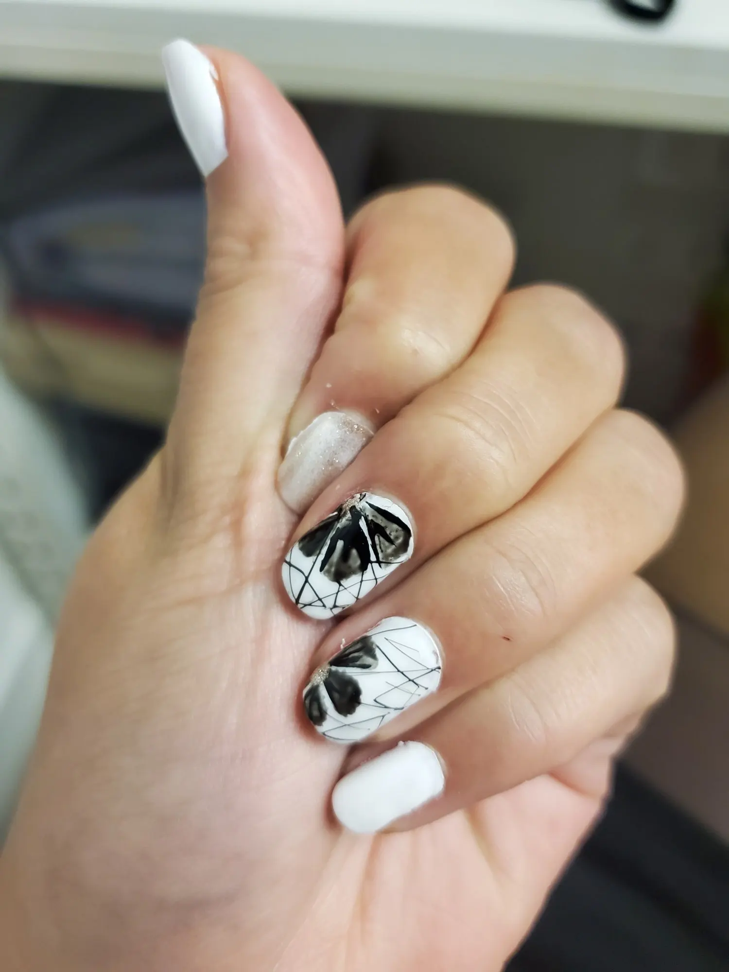 Обычная черная паутинка, заказ сделала впервые, ни разу паутинкой до этого не пробовала работать, я не мастер, а самоучка, дома сама себе маникюр делаю, но надеюсь понравится)