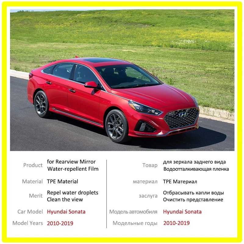 Для Hyundai Sonata 2010-2019 (YF LF), полноразмерное зеркало заднего вида, HD пленка, противотуманная непромокаемая Автомобильная Зеркальная Наклейка, автомобильные аксессуары