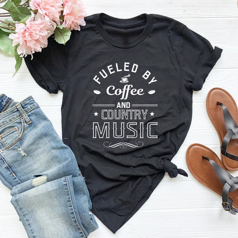 Забавная Футболка с принтом кофе и кантри, забавный подарок для любителей кофе Унисекс, повседневная женская футболка с графическим рокером, гранж топы, футболки