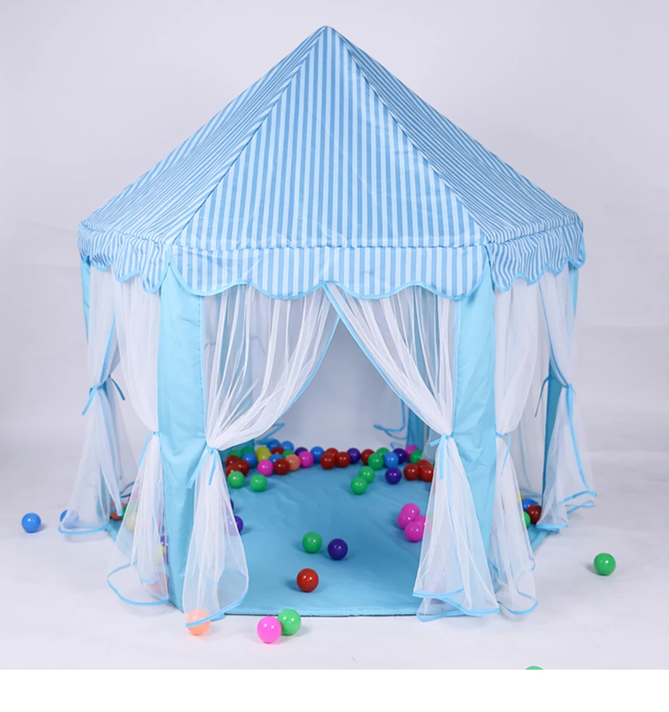 Принцесса игрушки:Девочкам или Мальчикам очень понравится Милая палатка с шестигранным замком. Занавески с сеткой легко открываются и закрываются, родители могут легко увидеть положение ребенка внутри в любое время, и они также вентилируются.