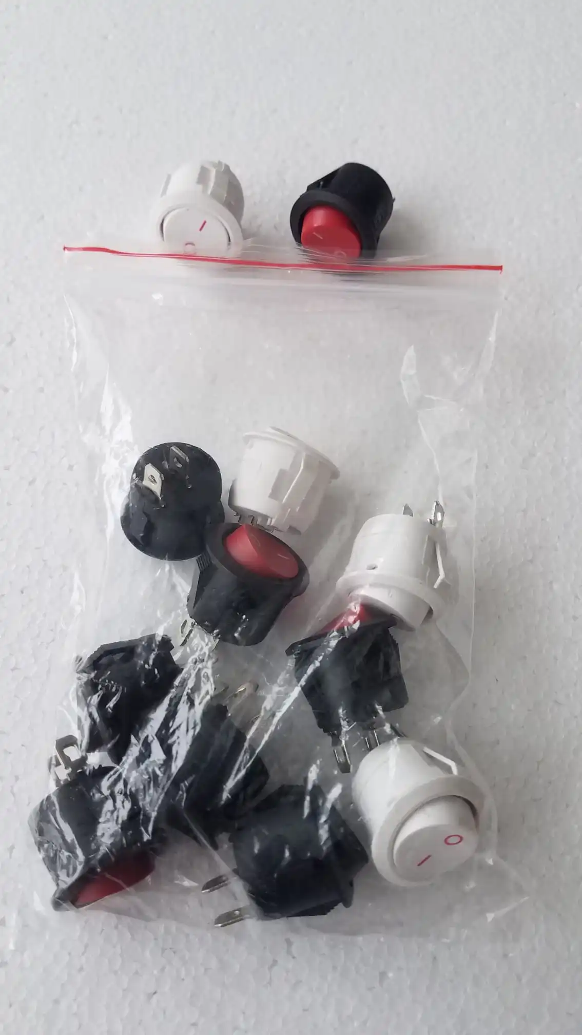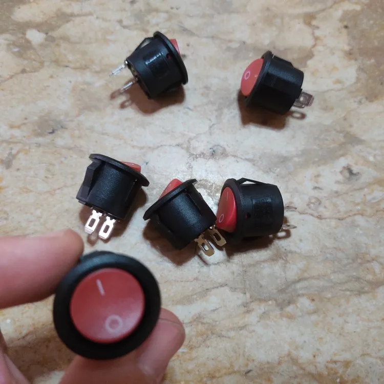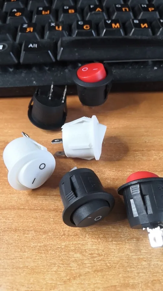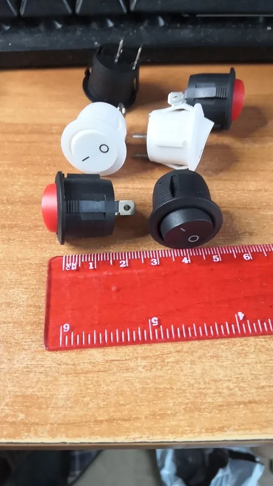 Кулисный Переключатель Круглый клавишный выключатель, диаметр 20 мм, черный, Круглый, черный, белый, красный, 2 контакта, KCD1-105