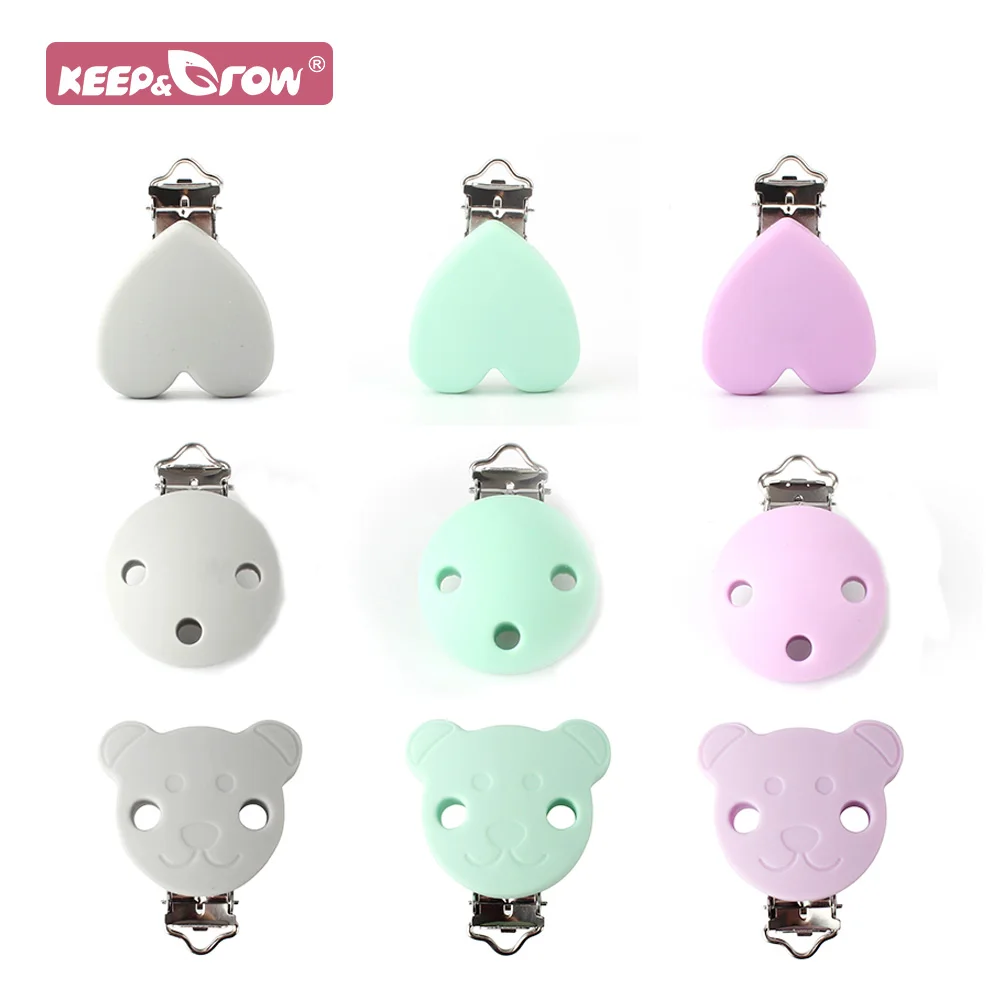 Keep & Grow 2 шт силиконовые соски цепи зажимы Сердце Медведь круглый ребенок прорезыватель зажимы держать соски цепи Детские продукты по уходу за полостью рта