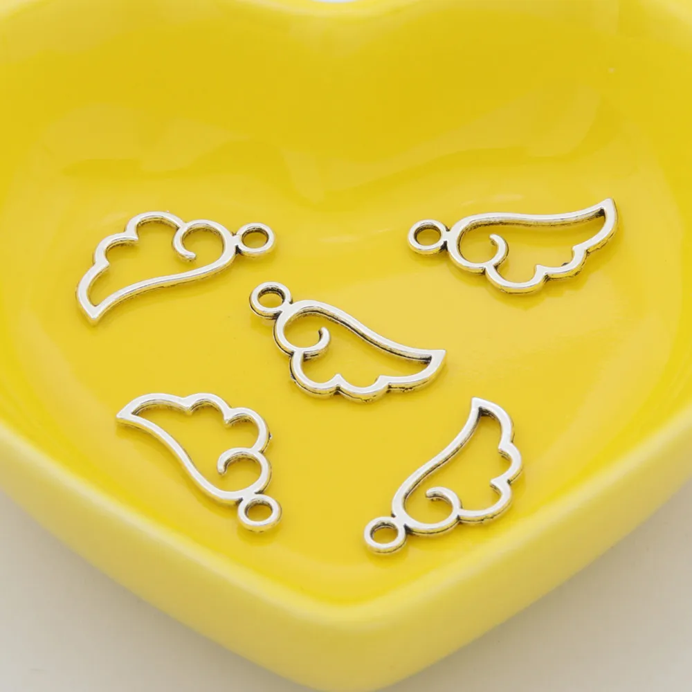 100 шт. серебряный цвет милые мини крылья шармы Крылья Ангела подве...