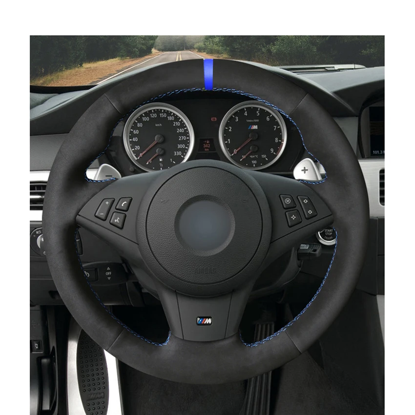 Черный, замшевый, Синий Маркер чехол рулевого колеса автомобиля для BMW E60, E63, E64, Cabrio M6 2005, 2006, 2007, 2008, 2009, 2010, аксессуары