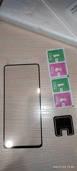 Стекло шло 25 дней, чуть меньше размера где то на 2 мм, края не скругленные. Такое толстоватое стекло смотрится. Но клеится хорошо, даже если попала пылинка можно отклеить 100 раз и убрать, так же хорошо приклеится. Очень заметны отпечатки пальцев. Прям надо оттирать ( руки чистые). Было бы здорово если бы не было чёрного канта, все таки стекло меньше и закрывается часть экрана. Стекло на камеру чуть хуже по качеству. Тут уже не получится один раз убрать пылинку, будет отходить по краям. Набор стоит своих денег. Спасибо продавцу