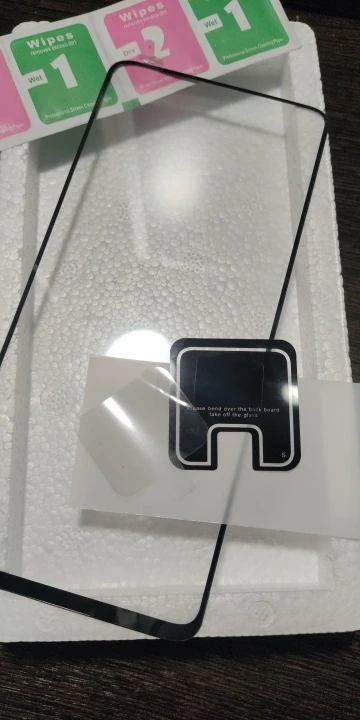 Доставка 20 дней. Стекло по размеру подходит, но чёрная рамка сужает экран, отверстия для фронтальной камеры нет. Стекло для камеры было плохо упаковано, и плёнка, которая для удобства приклеивания, совсем отошла.