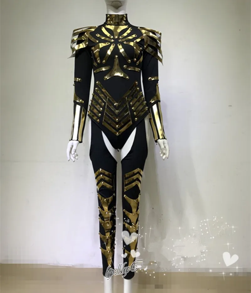 Комбинезон с золотым зеркалом, Женский солдат-воин, одежда для ролевых игр, одежда для диджея, ночного клуба, танцевальной команды, костюм для сцены, Косплея