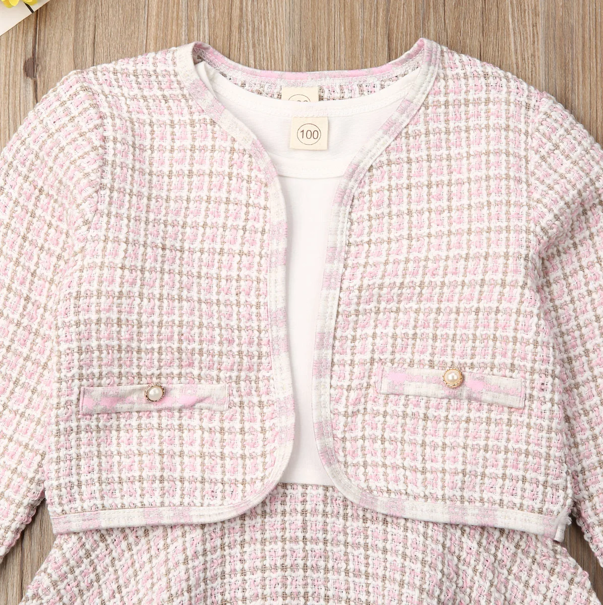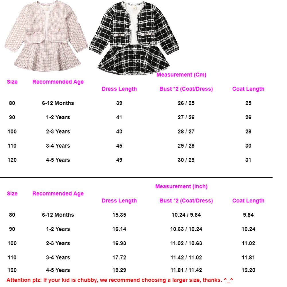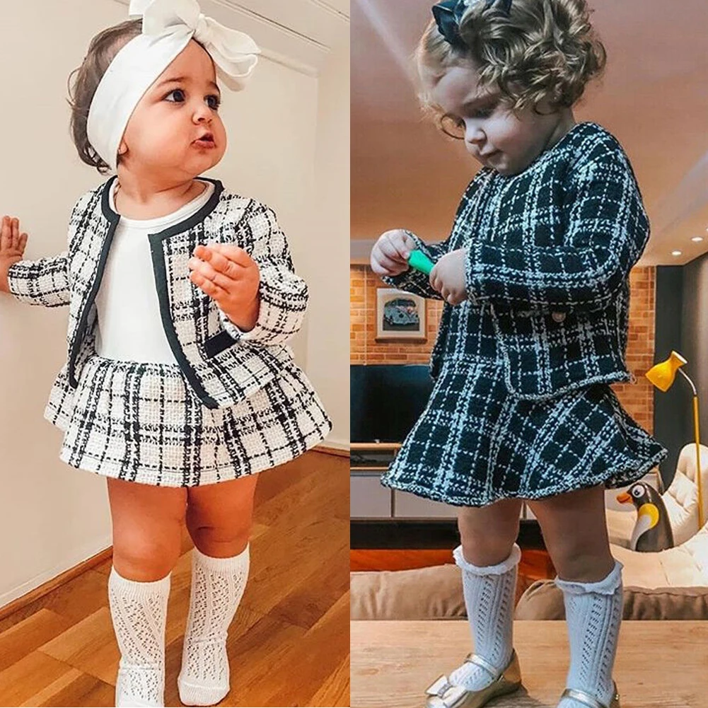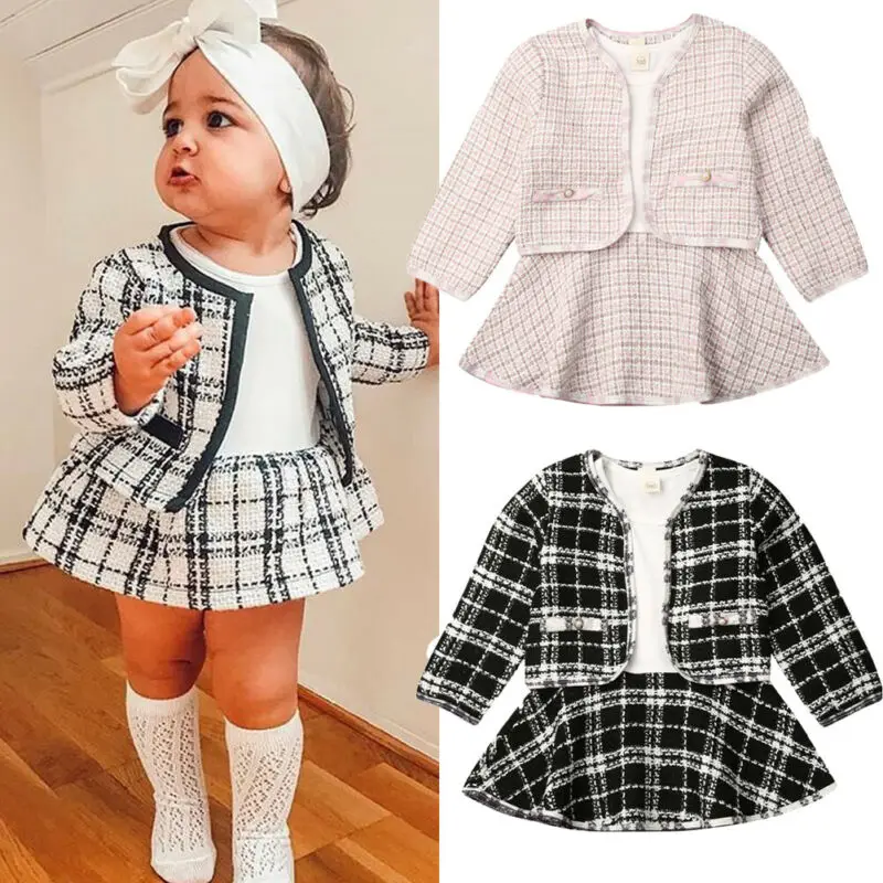 2020 модные От 1 до 6 лет комплекты одежды для маленьких девочек клетчатое пальто с длинными рукавами для дня рождения топы + платье Вечерние комплекты из 2 предметов
