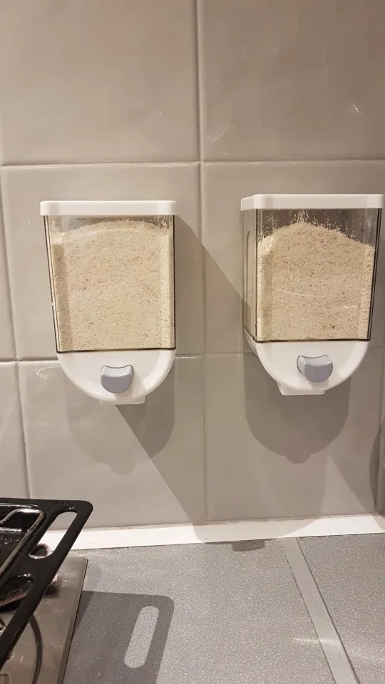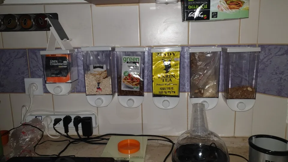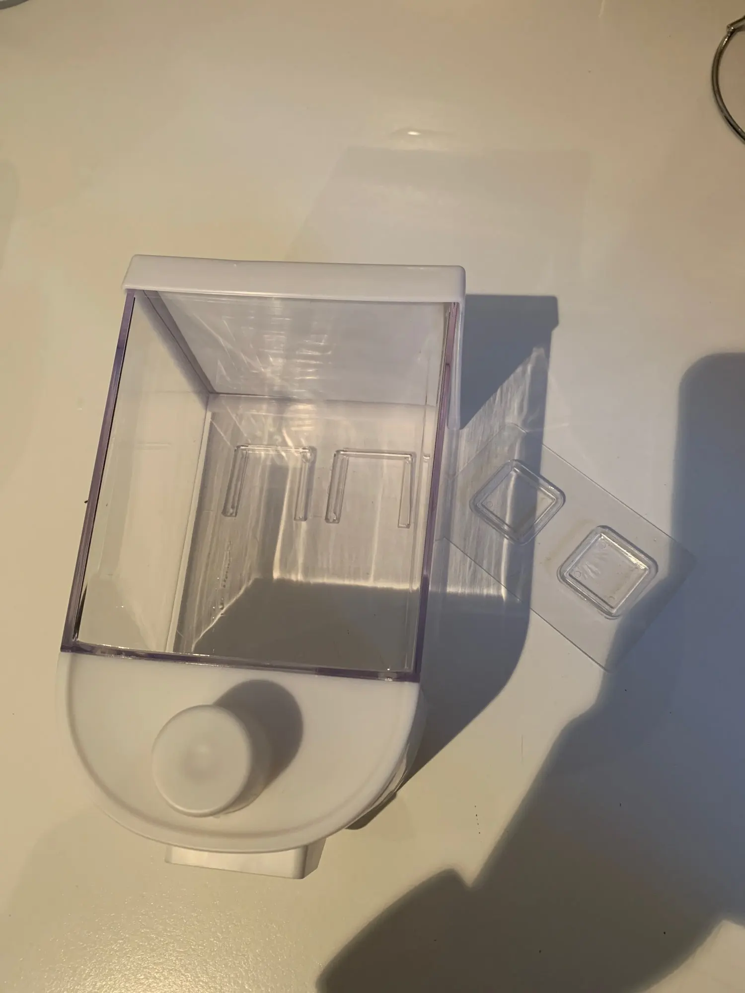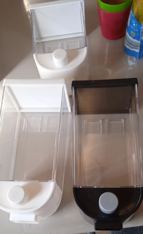контейнер хорошего качества, исправен. запаха нет. приклеили на клей к шкафчику, влезает 2 пачки мюсли. за эту цену присылают 1 штуку. дошел очень быстро до города Орёл.
