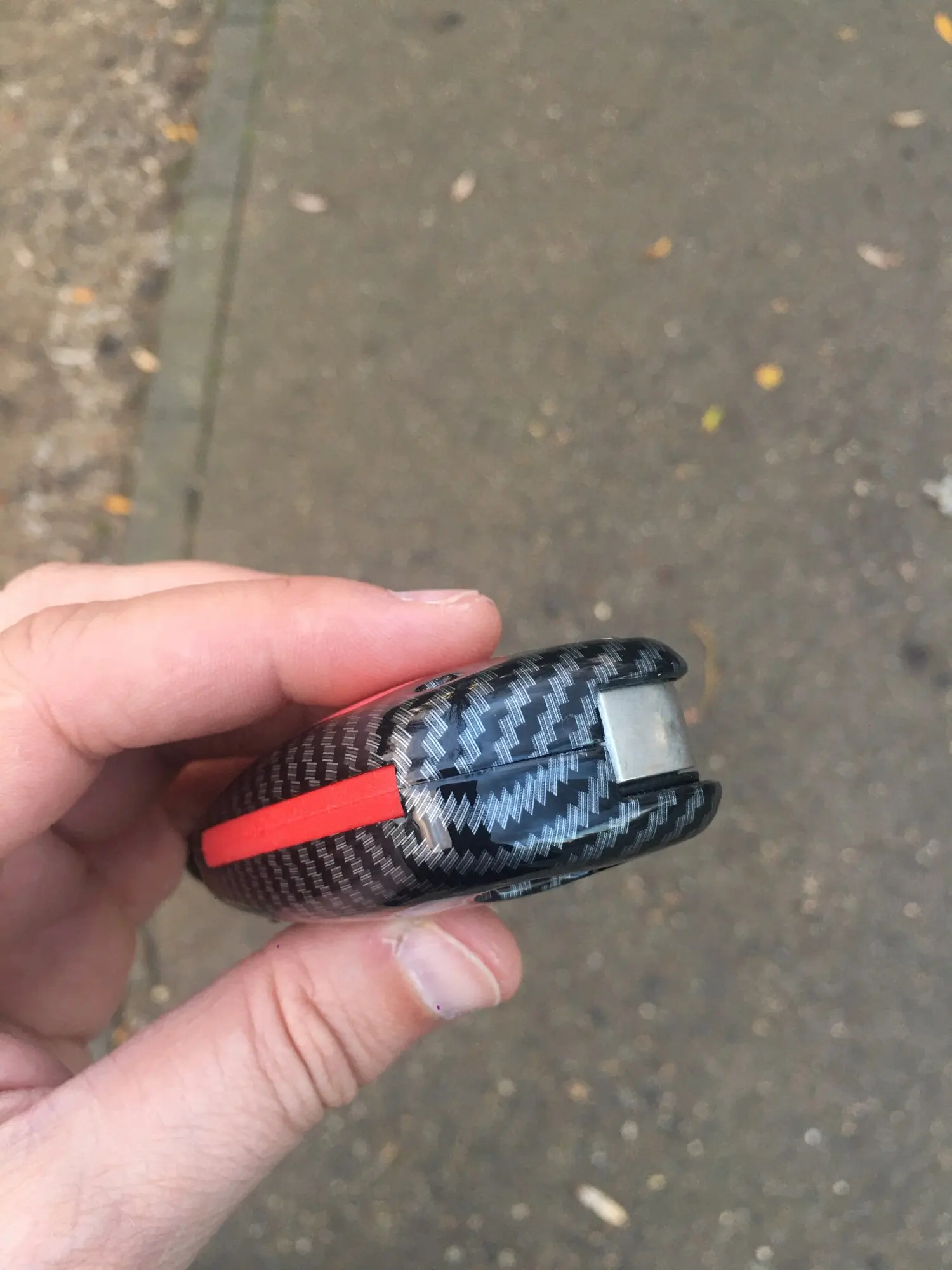 Изменение-это грубое! Я люблю его, защищает ключ от падения, это не влияет ни на что его использование, материал корпуса и кнопки резиновые, дизайн имитирует углеродное волокно и придает ему очень современный вид, мы увидим, долго ли он держится и не навредит, рекомендую. Доставка была быстрой.