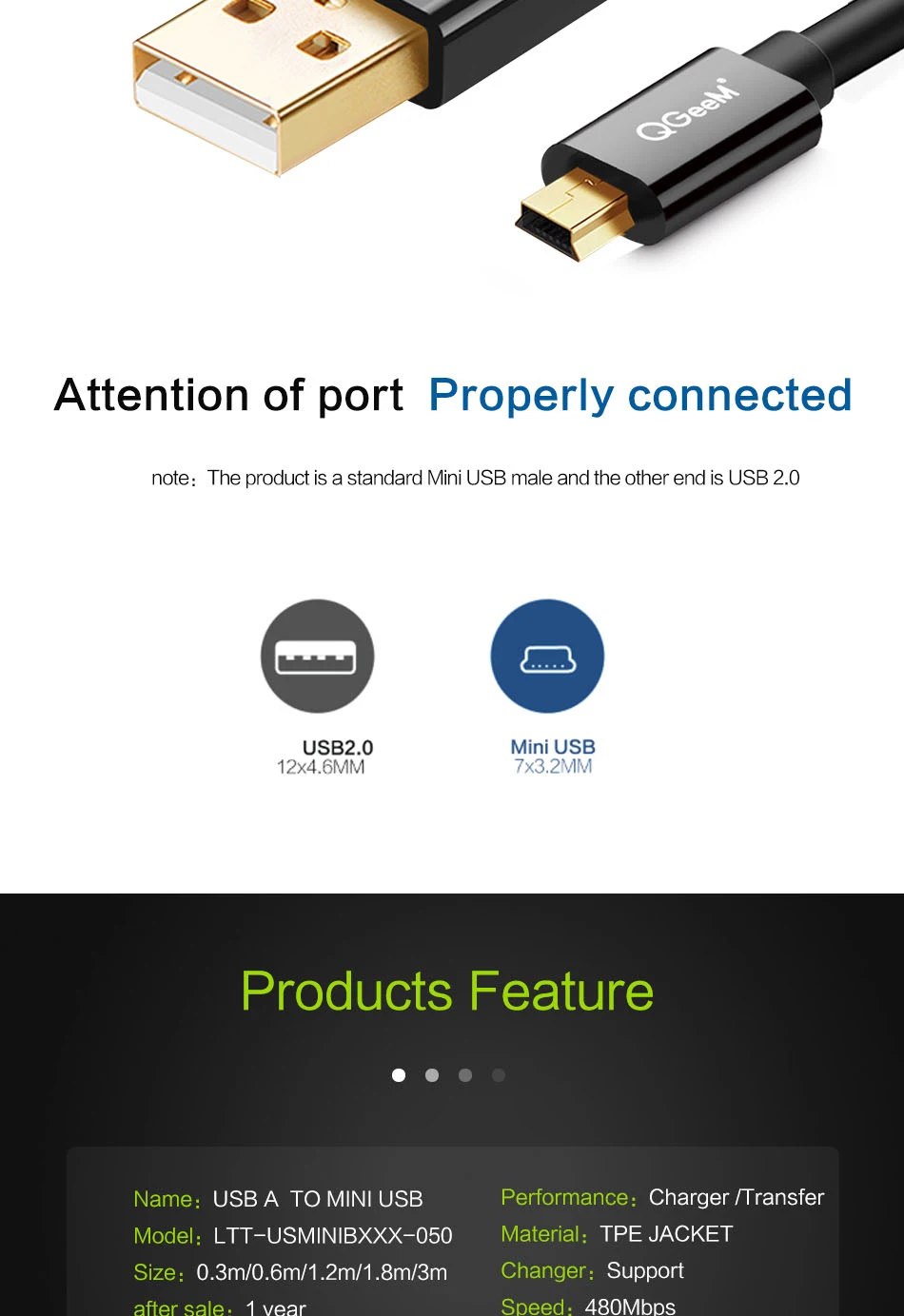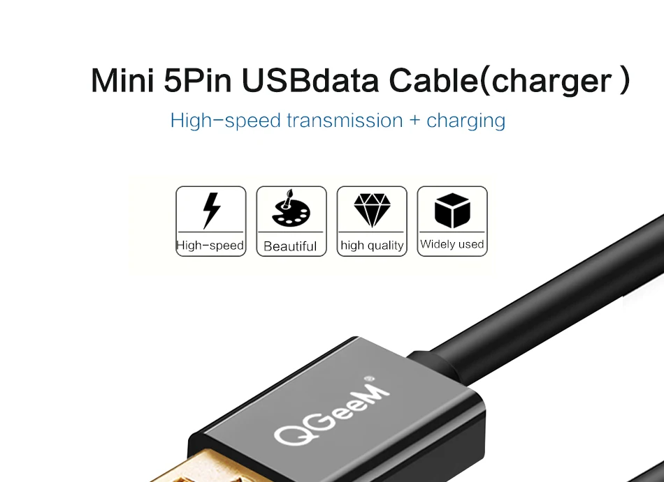 Кабель USBMini USB QGeeM, для зарядки и передачи данных, поддержка быстрой зарядки, для сотовых телефонов, MP3, MP4 проигрывателей, GPS, цифровой камеры, жесткого диска