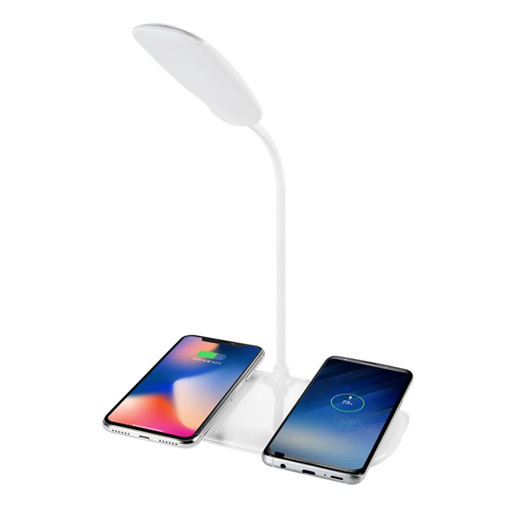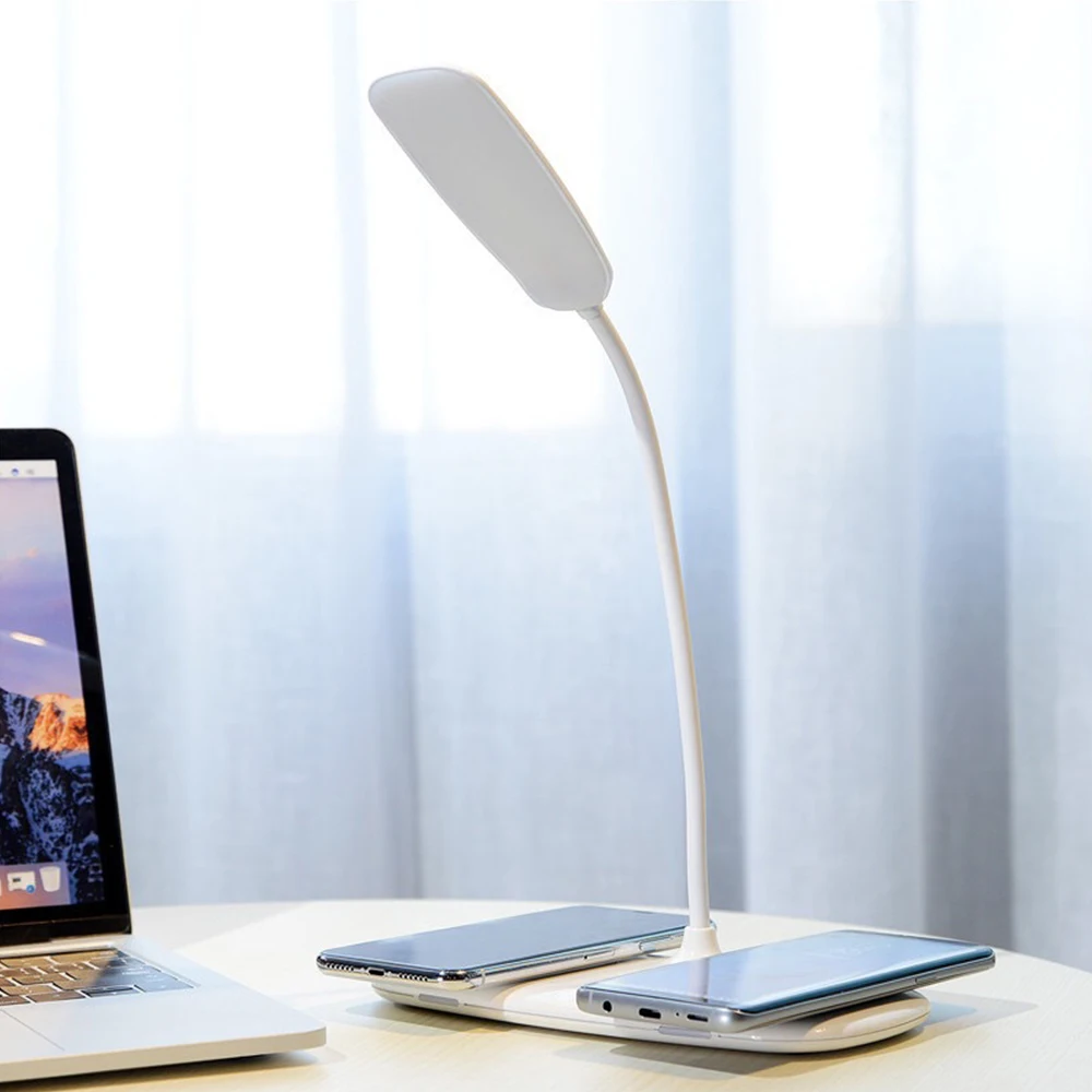 Светодиодная настольная лампа QI с быстрой беспроводной зарядкой, портативная Настольная лампа с защитой глаз и гибким сенсорным управлением на 360 градусов, ночсветильник для ЕССША