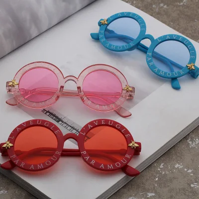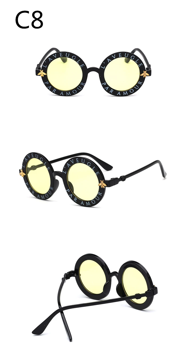 Солнцезащитные очки ASUOP для детей, Классические солнцезащитные очки для мальчиков и девочек в стиле ретро, с изображением пчел, UV400, круглые детские очки с английским алфавитом, 2020