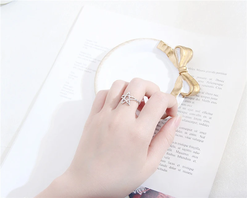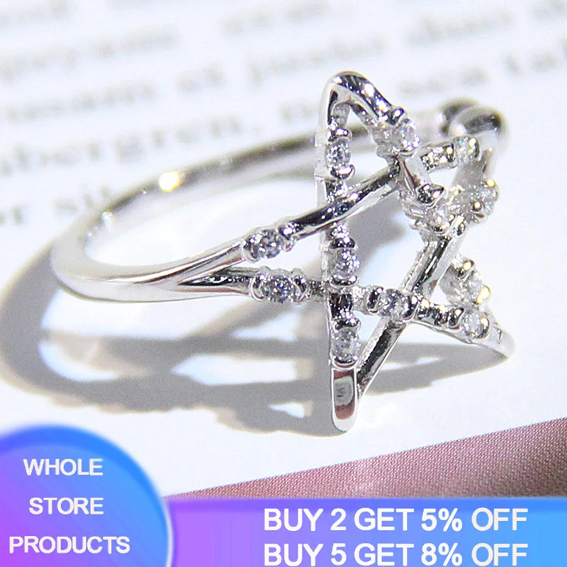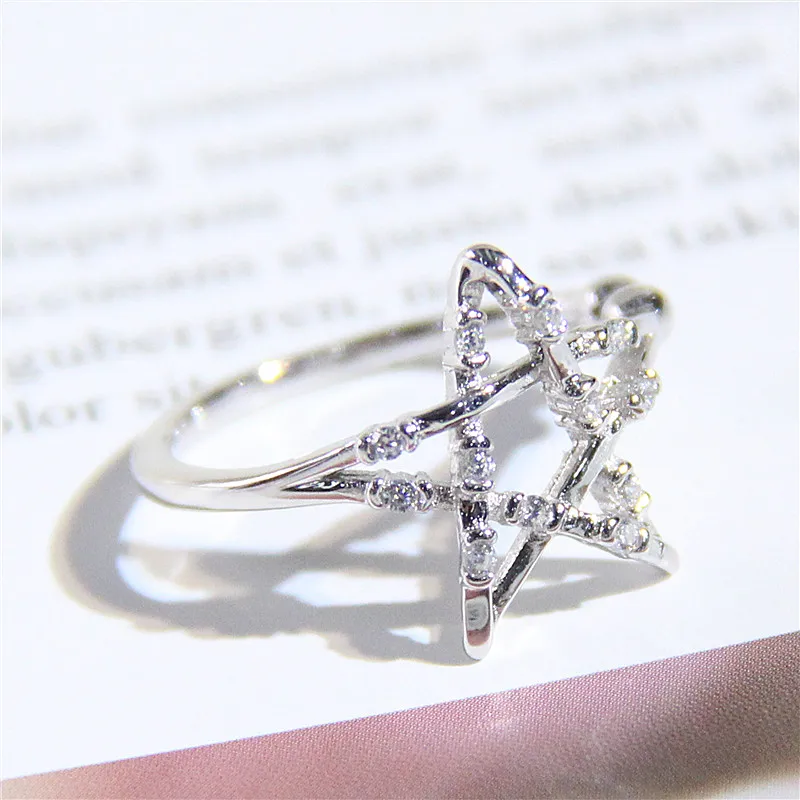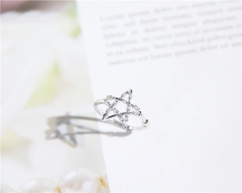 Кольцо женское из тибетского серебра пробы с пятиконечной звездой