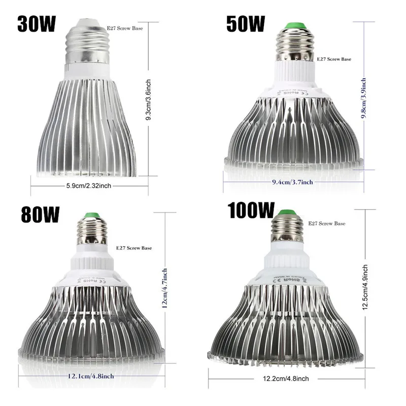 Полный спектр 30 Вт/50 Вт/80 Вт/100 Вт/120 Вт AC85 ~ 265 В UV + IR E27 Светодиодный светильник для выращивания цветущих растений Гидропоника система светодиодный светильник для аквариума