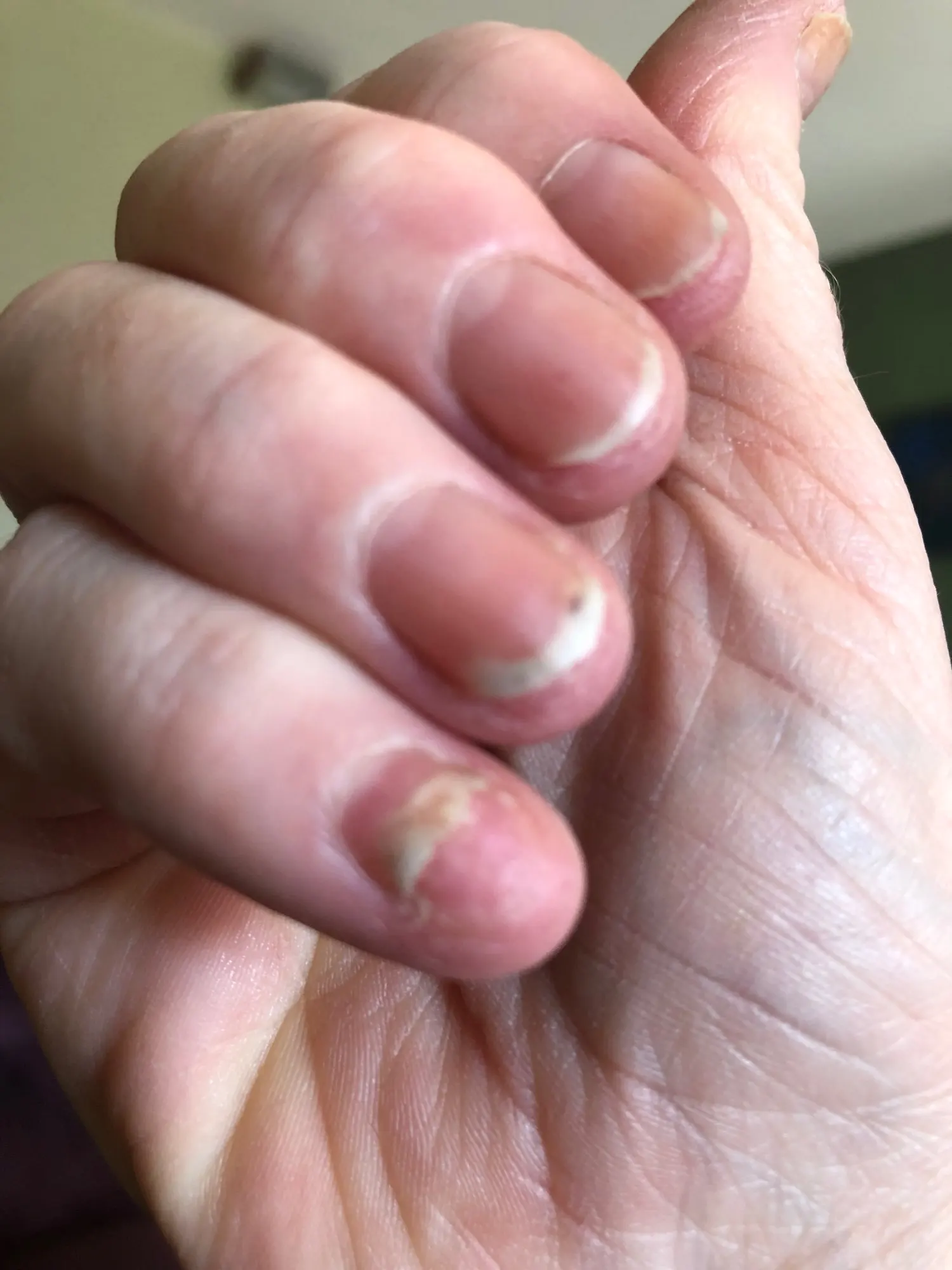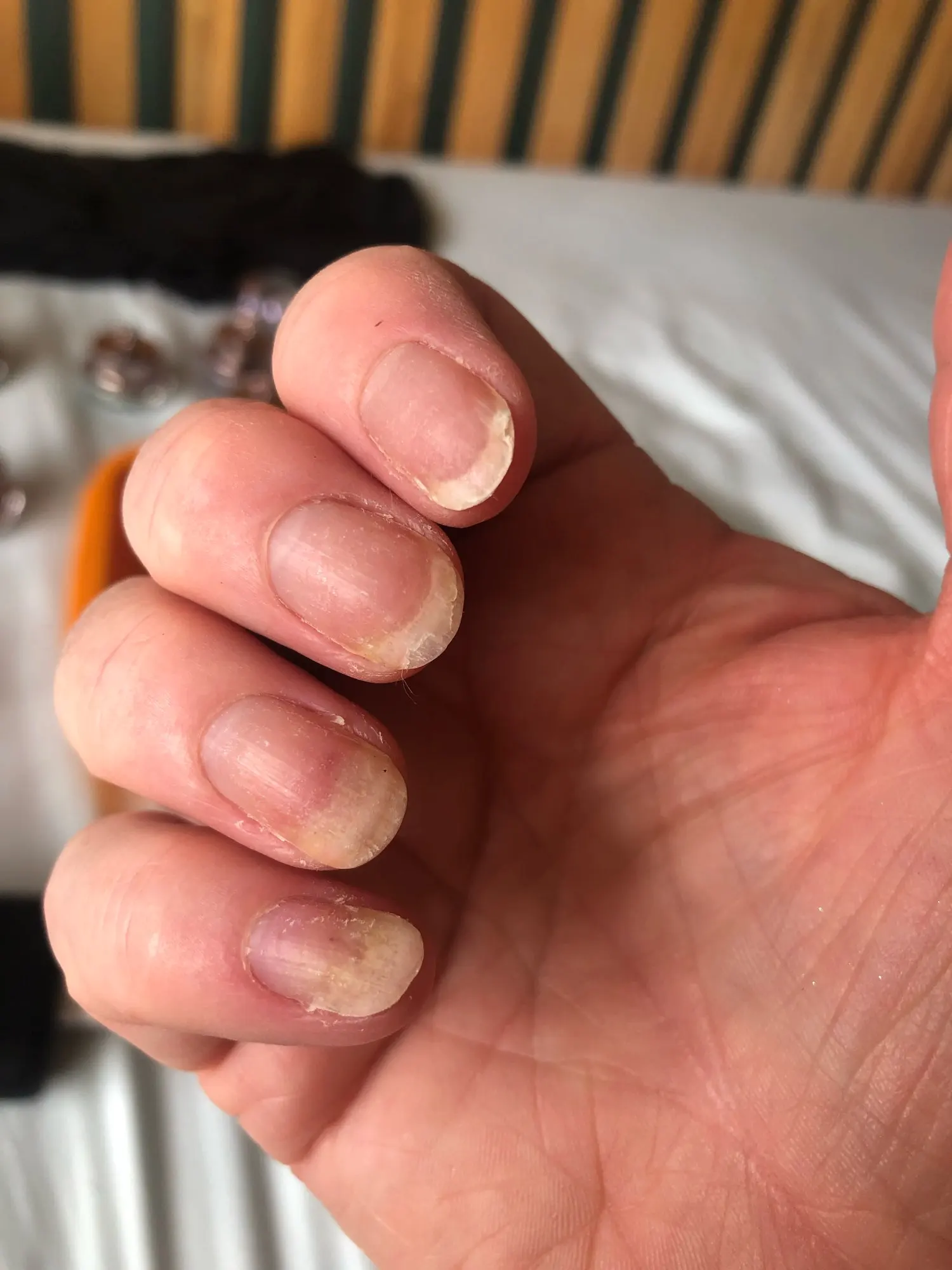 Я был так рад попробовать это. Больше никакого замачивания, я думал! К сожалению, это абсолютно разрушило мои милые ногти, что вызывает много боли и означает, что я, скорее всего, попробую вырасти их не менее 6 месяцев. Пожалуйста, посмотрите фотографии и избегайте этого продукта. Я на самом деле чувствую, что мои ногти поднимаются с ногтевой кровати вскоре после того, как надевал их, но, несмотря на быстрое удаление, повреждения были сделаны. Я сфотографировал ногти, как они были, сразу после удаления, а затем через 10 дней.
