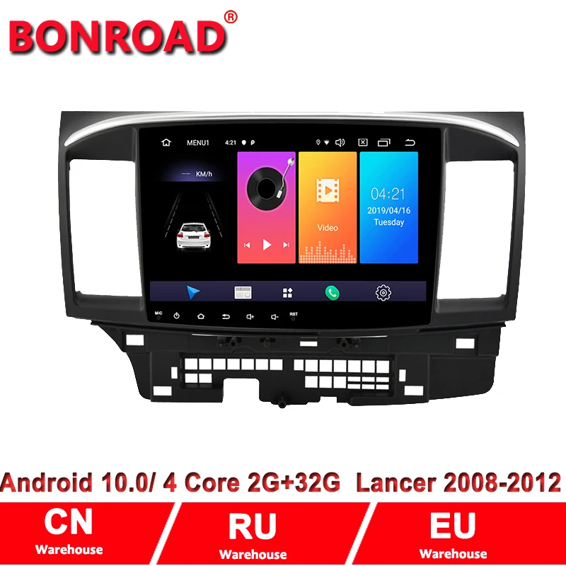 Автомобильный мультимедийный плеер Bonroad, 2 din, Android 10, стереоприемник для Mitsubishi lancer x 2010-2015, автомобильное радио, GPS-навигация, видео