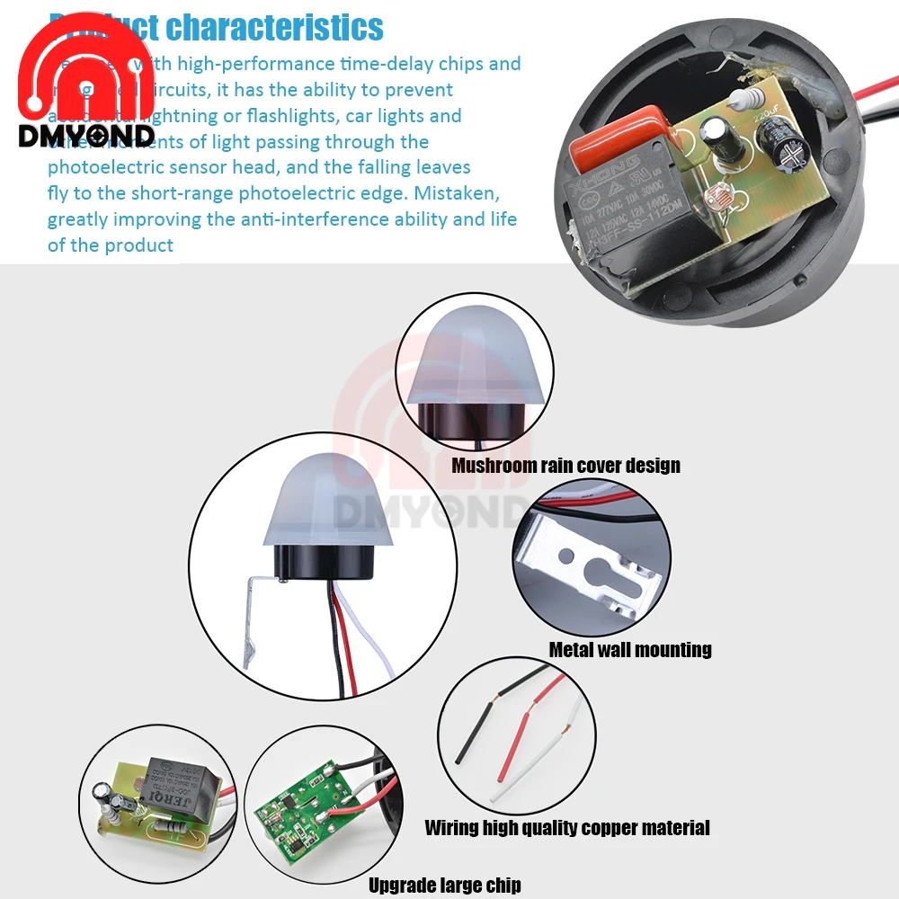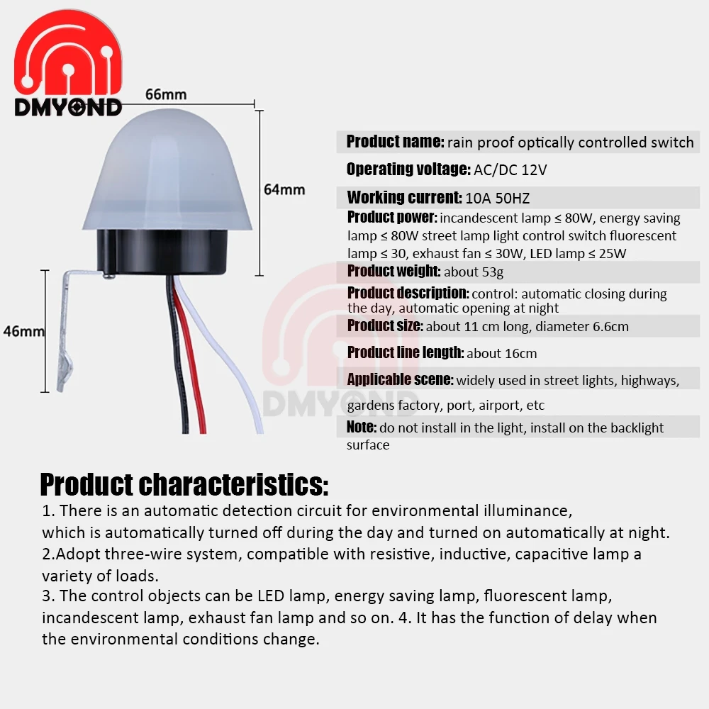 AS-20 DC 12V AC 110V 220V водонепроницаемый переключатель управления освещением 50-60Hz 10A фото управление переключатель датчика для уличного освещения