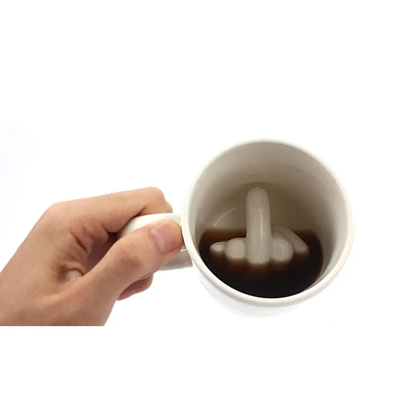 Креативная белая чашка для смешивания кофе, молока, с изображением среднего пальца, достаточной емкости, смешная керамическая чашка