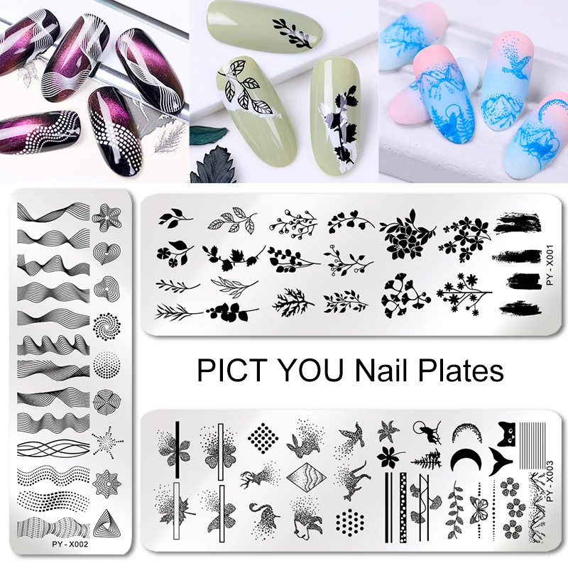 Пластины для стемпинга ногтей PICT YOU, с геометрическими цветами, листьями животных
