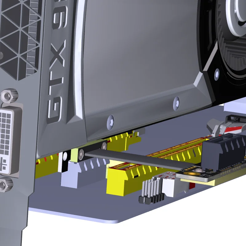 Слот PCIe x1 заблокирован видеокартой и расположен под видеокартой. Сколько места необходимо установить Удлинительный кабель?