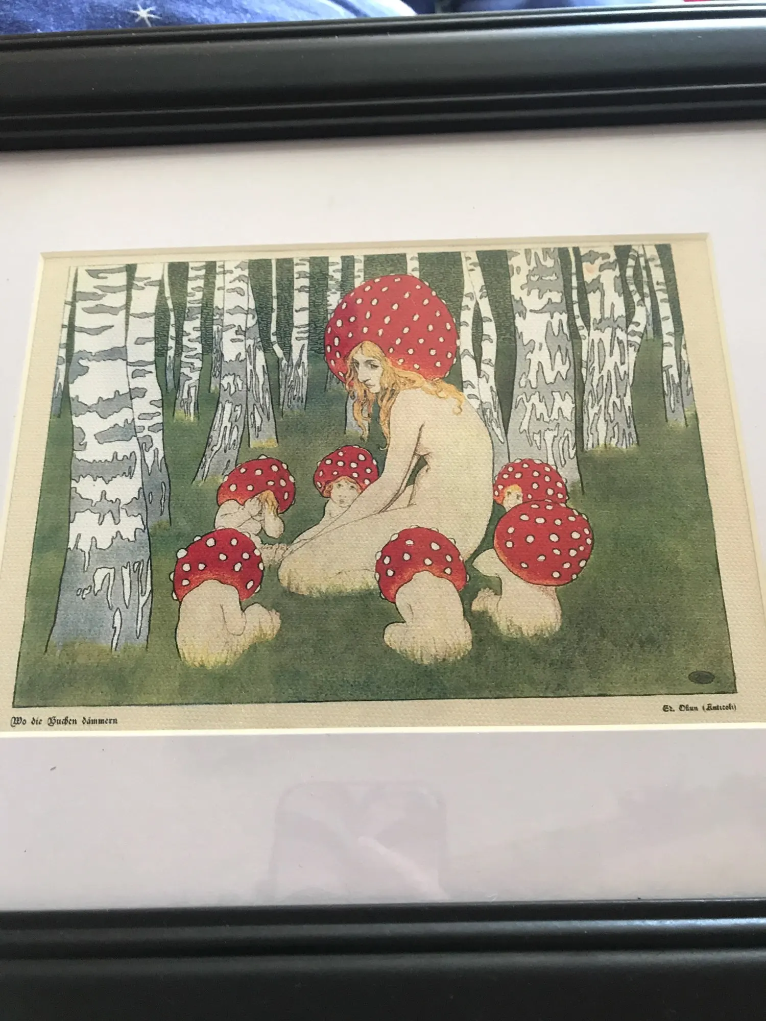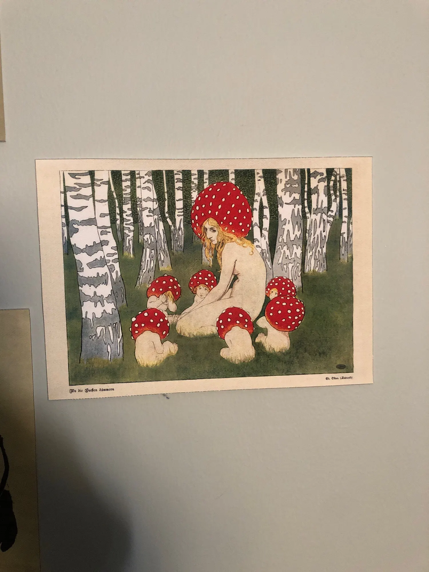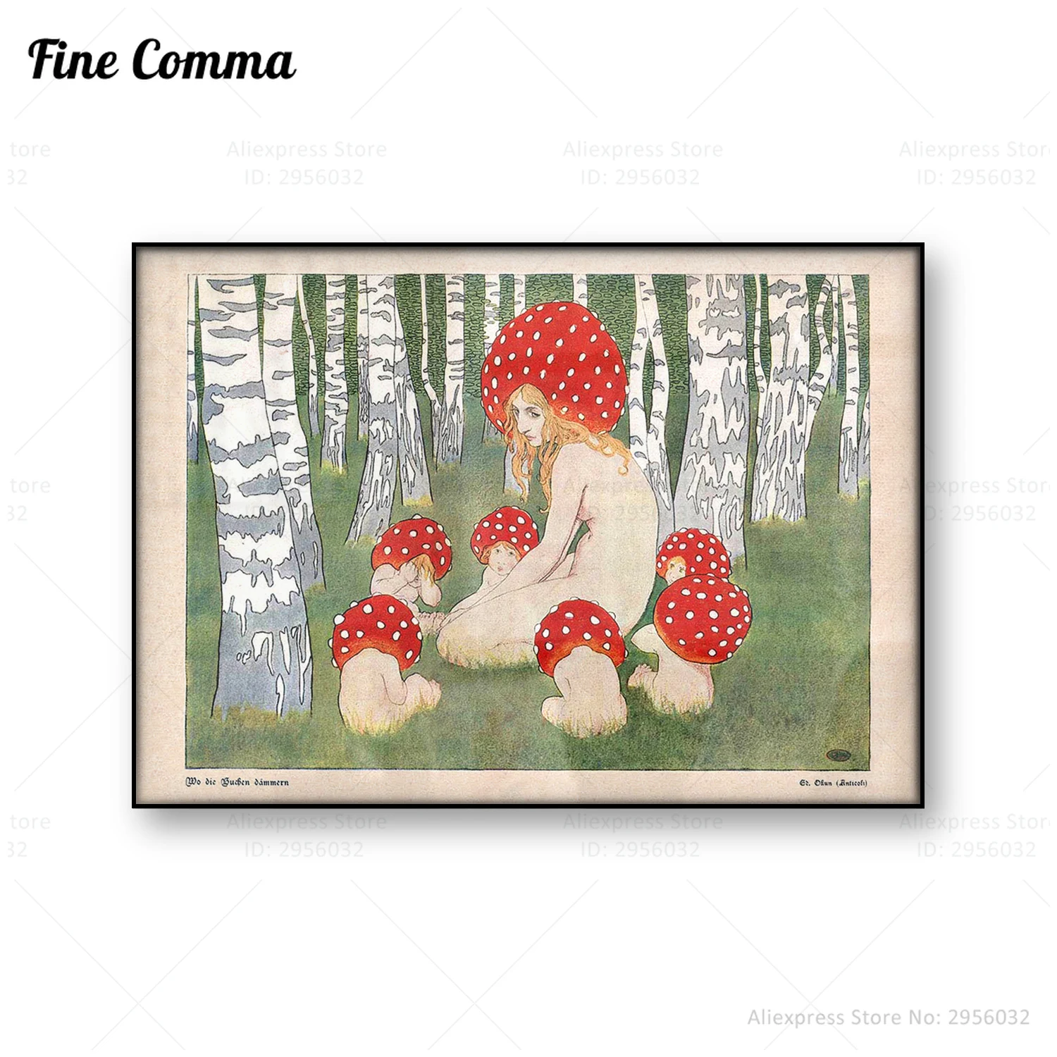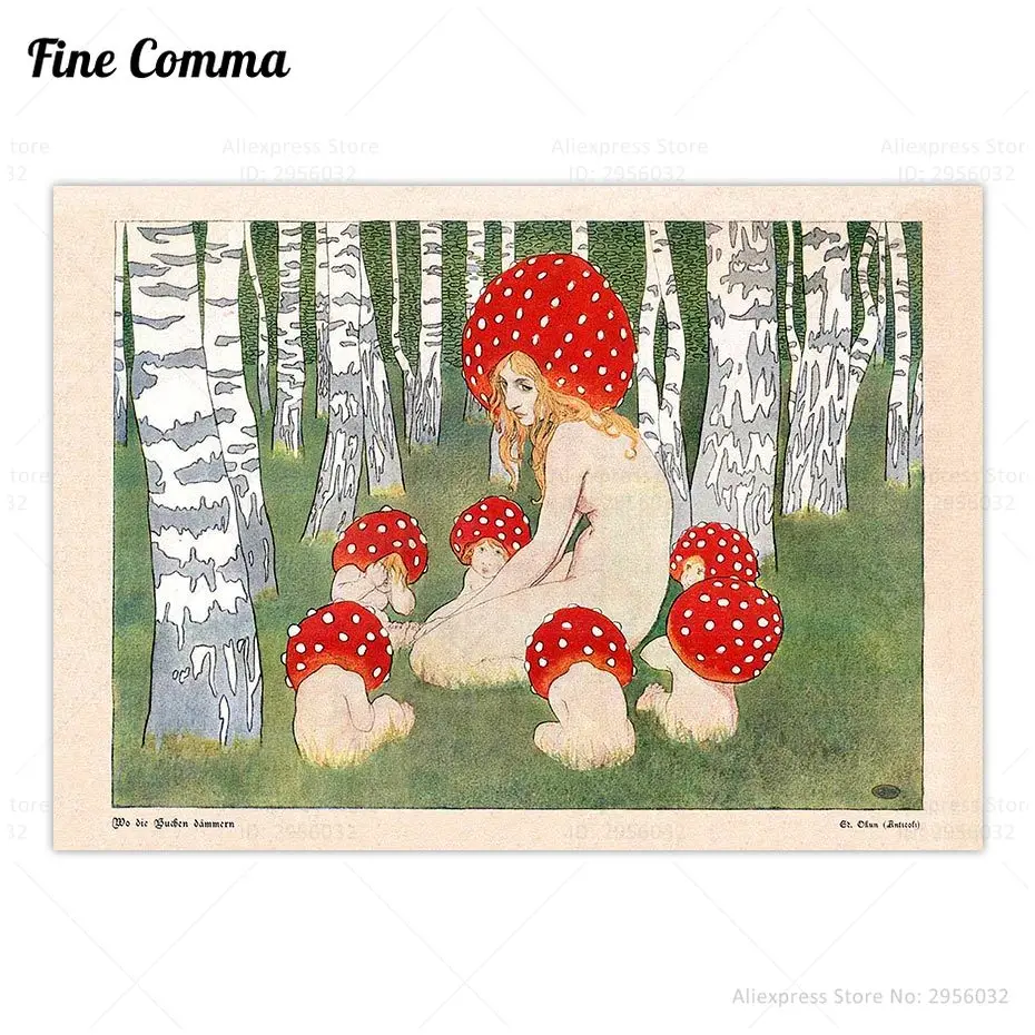 Мать гриб с ее детьми винтажный художественный печать плакат гриб настенное искусство лесной Декор античный Лес холст печать живопись