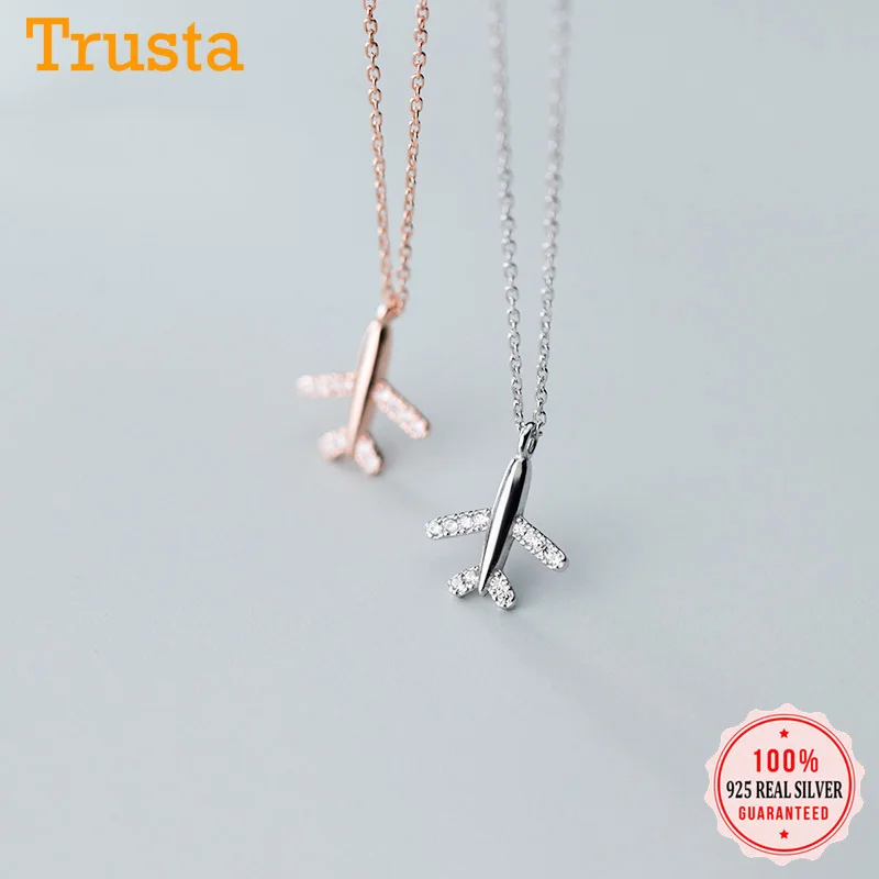 Trusta подлинное серебро 925 пробы модные путешествие самолет мерцающие CZ короткое ожерелье с подвеской для женщин серебро 925 ювелирные изделия DA805