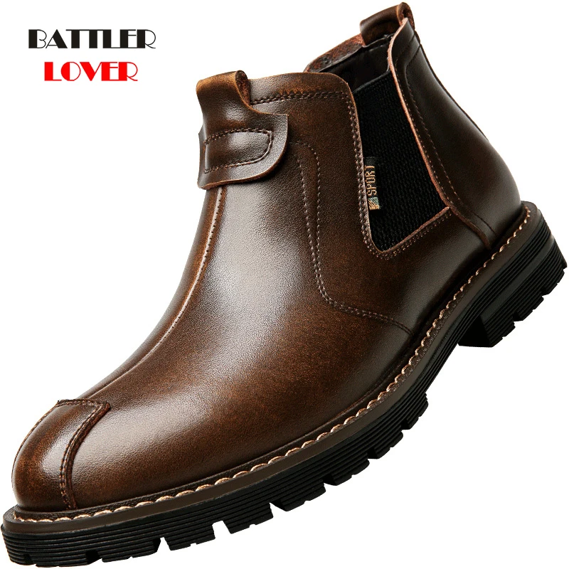 Мужские ботинки без шнуровки, коричневые ботильоны из натуральной кожи, мотоциклетные ботинки ручной работы, ковбойские ботинки челси, большой размер, 2019