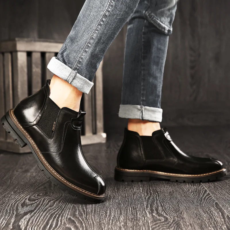 Ботинки Челси мужские без шнуровки, Повседневная Деловая обувь на п...