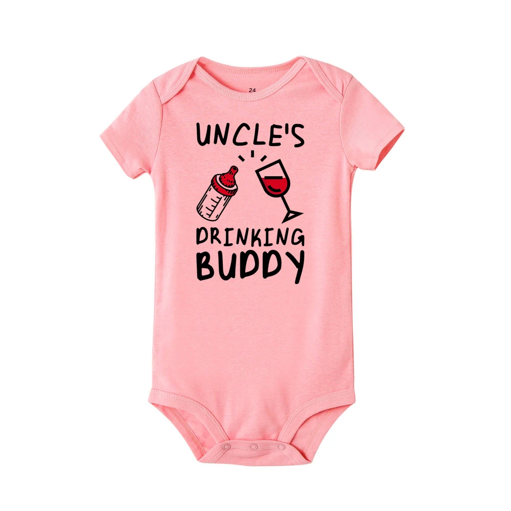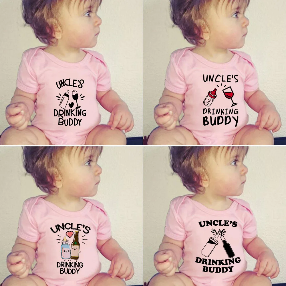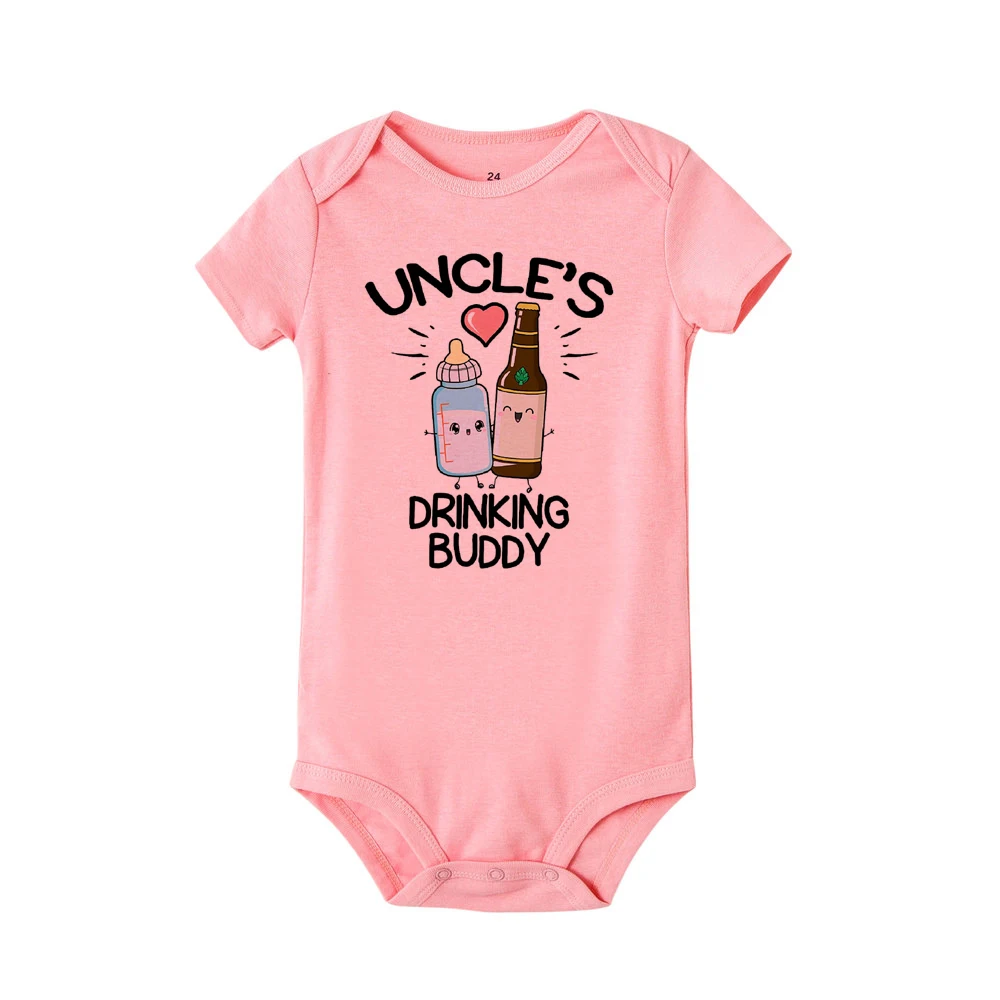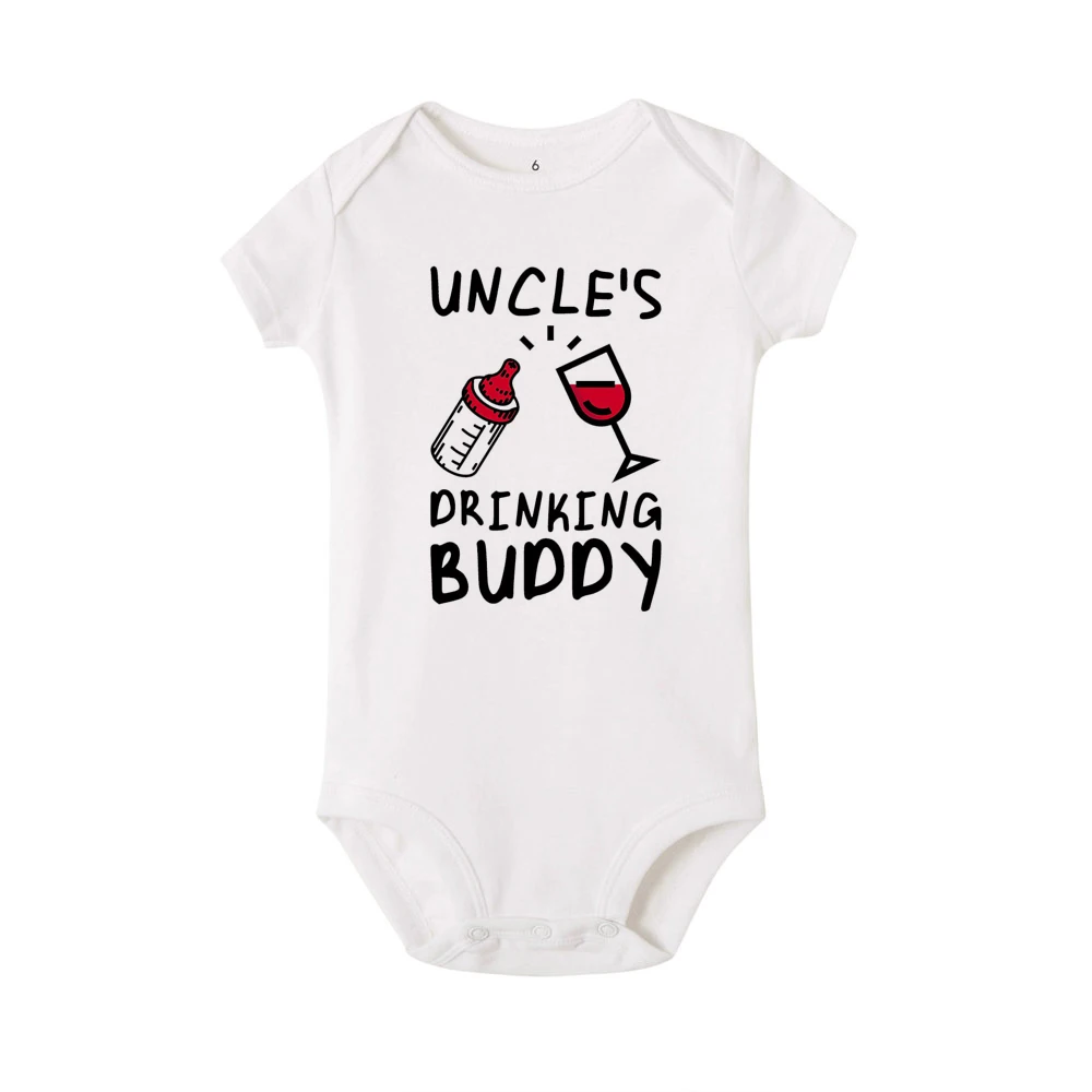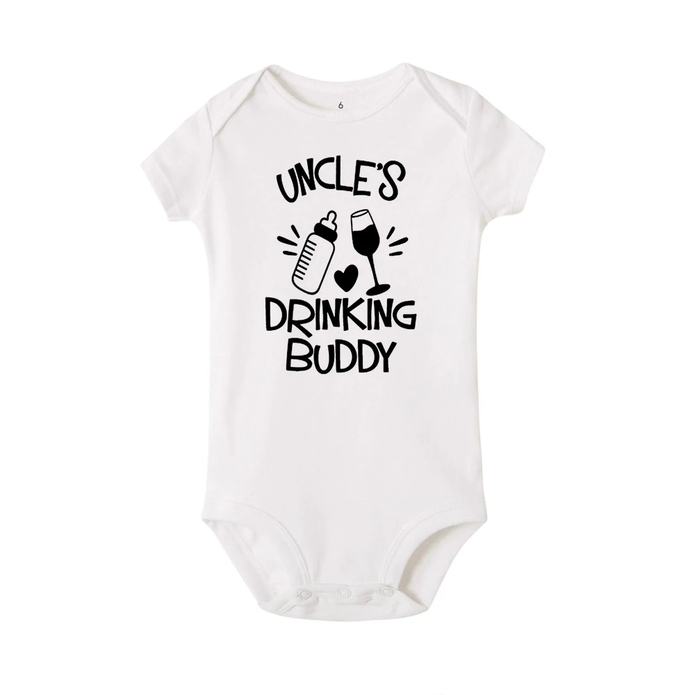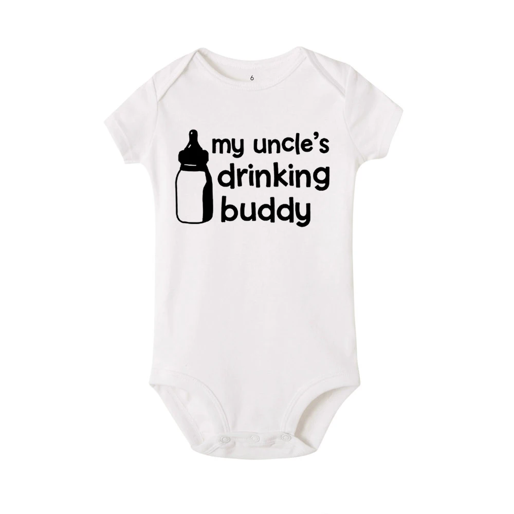 Детский боди с коротким рукавом и надписью «Uncle's Drinking Buddy», Забавный повседневный комбинезон для новорожденных, одежда для малышей