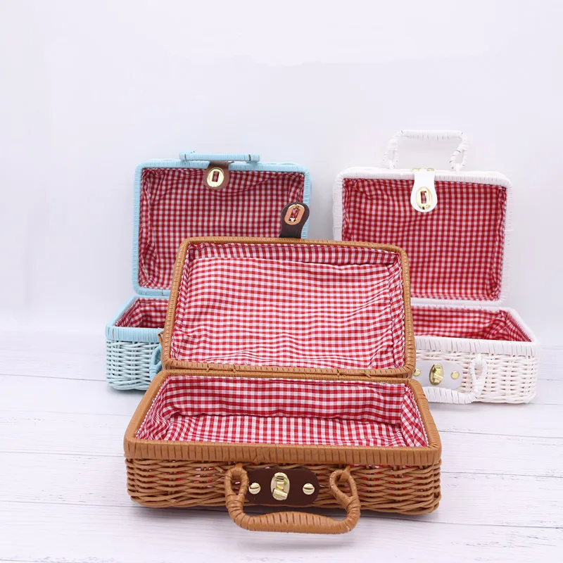 Соломенная косметичка, ретро чемодан из ротанга, плетеная коробка д...