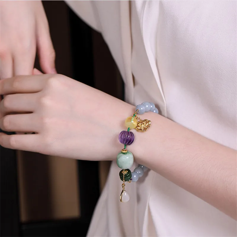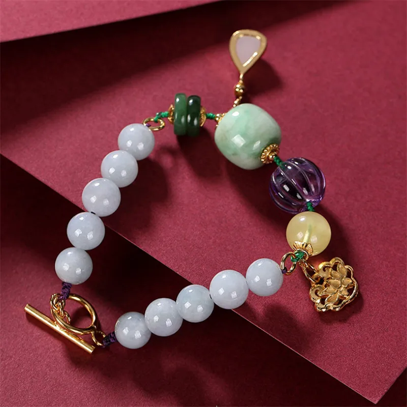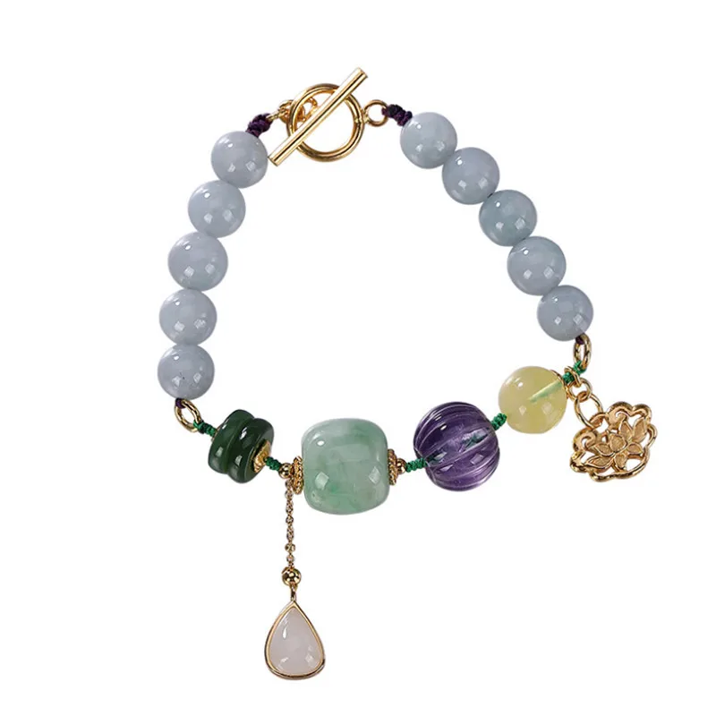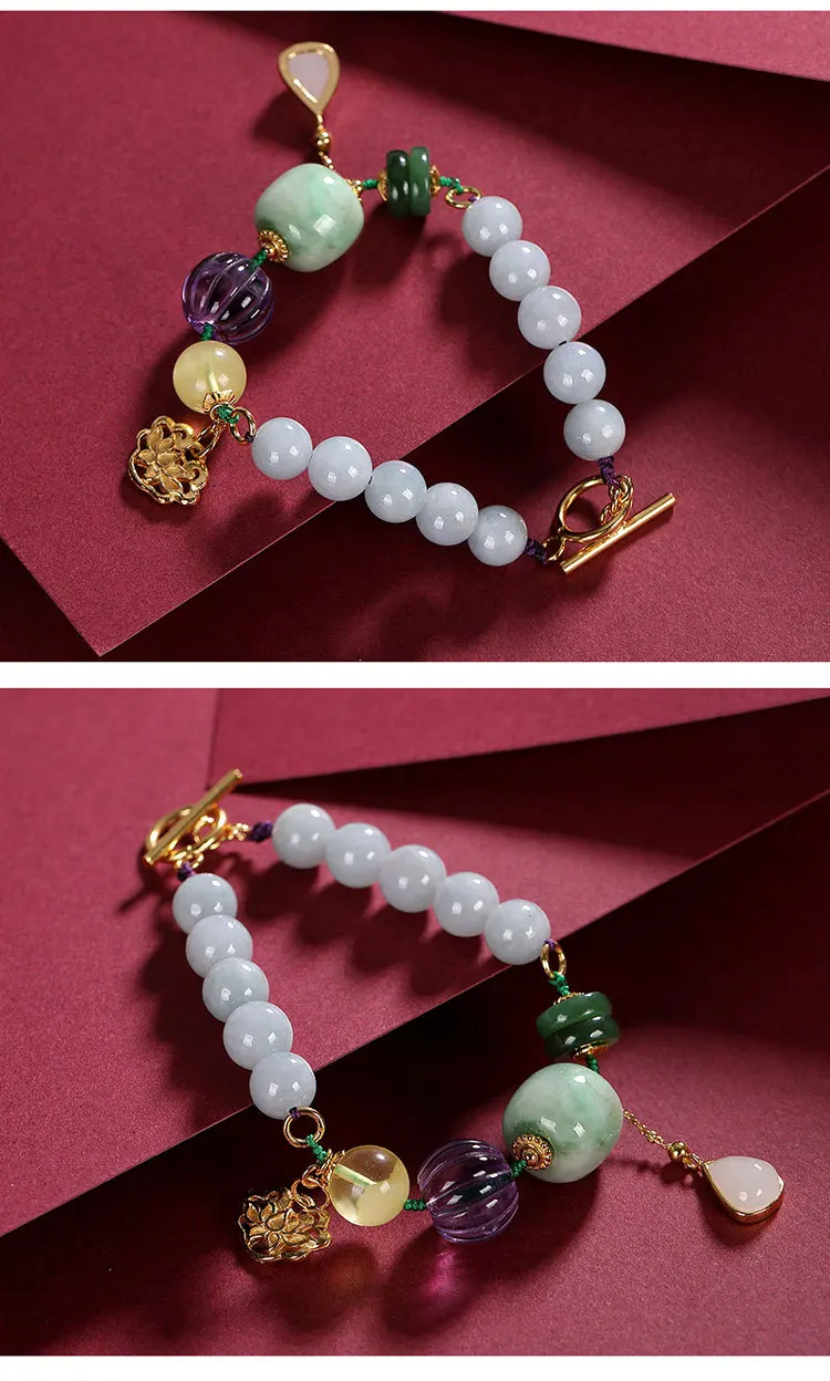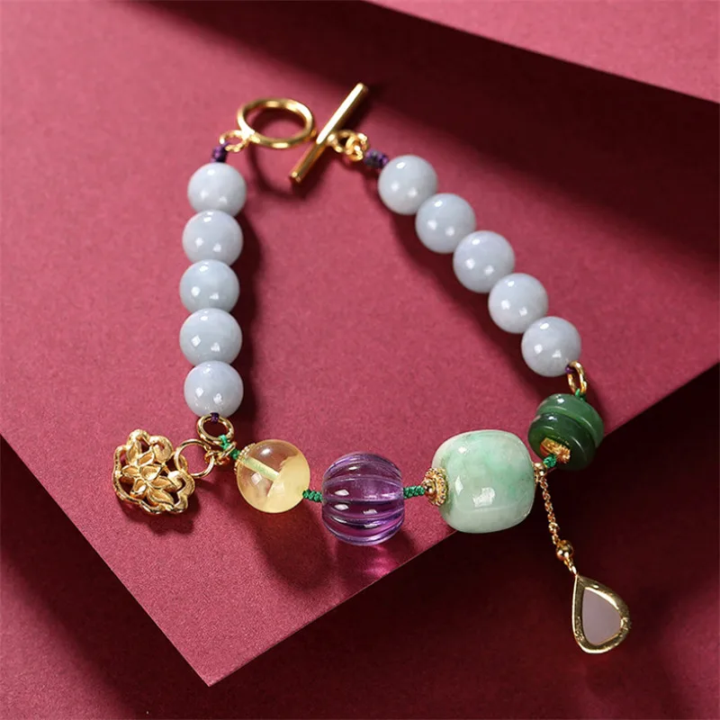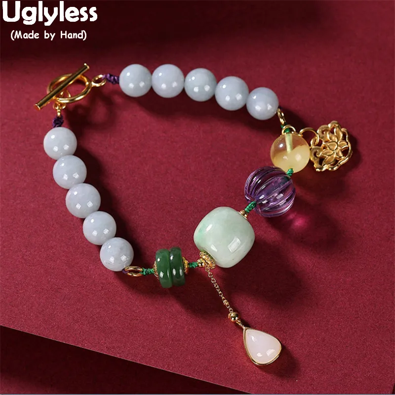 Uglyless Красочные Multi Treasure браслеты из драгоценных камней для женщин настоящий 925 Серебряный Лотос Подвески кристаллы Янтарный нефрит изумруд ювелирные изделия