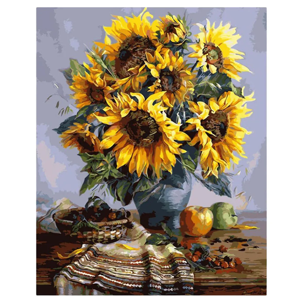 Картина с желтым подсолнухом, цифровой домашний декор, картина маслом по номерам, для детей и взрослых, для начинающих, без рамки