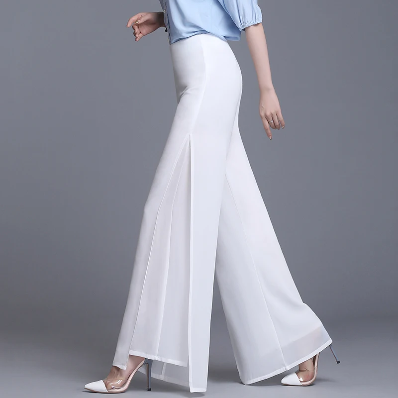 Брюки женские шифоновые с широкими штанинами, винтажные повседневные штаны с завышенной талией, свободные длинные брюки в Корейском стиле, лето 2021