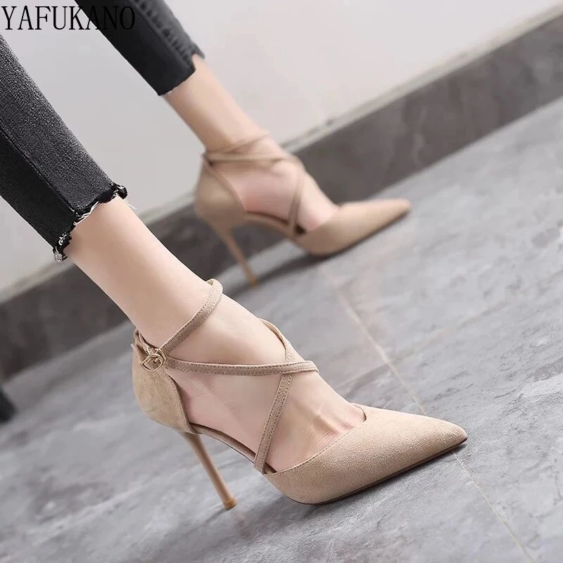 Женские туфли на высоком тонком каблуке, туфли-лодочки с острым носком и ремешком с пряжкой, привлекательная обувь для вечеринки на лето, 2022