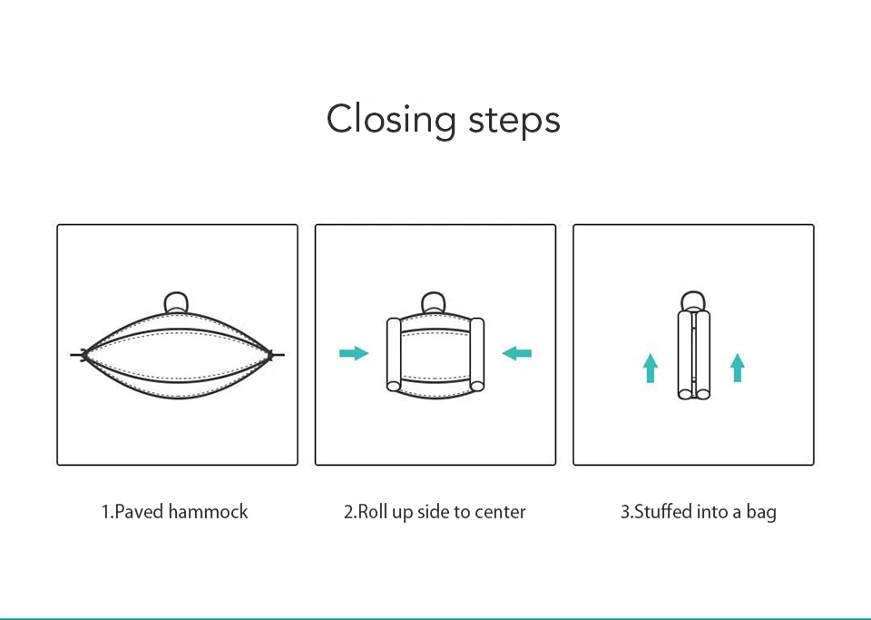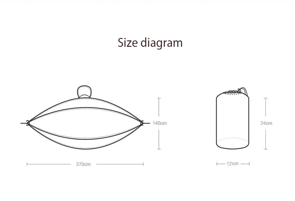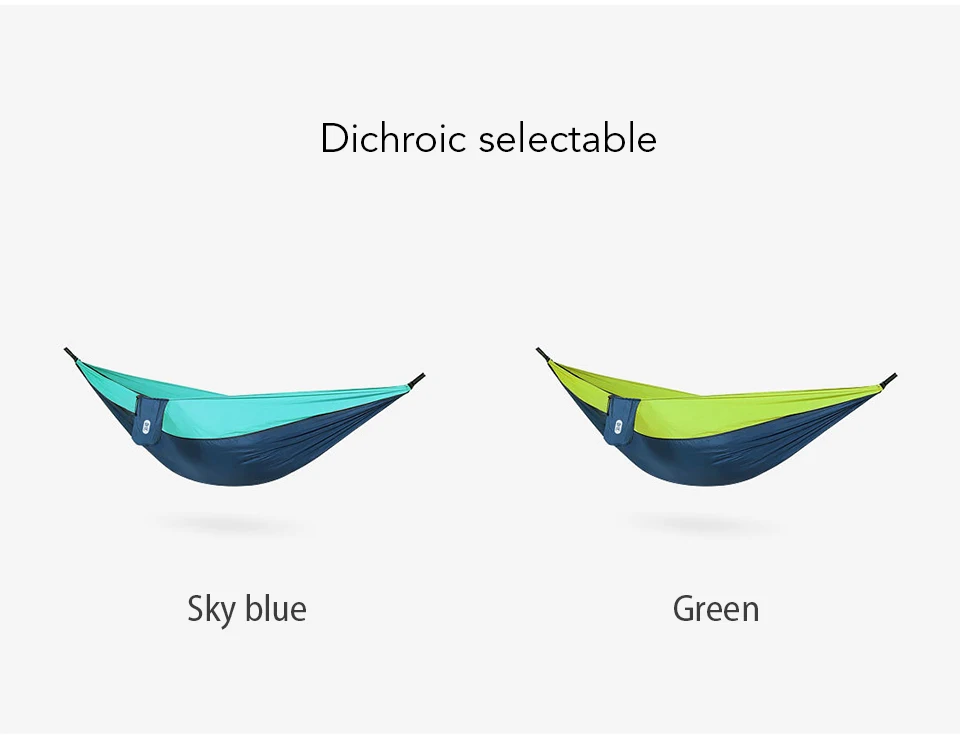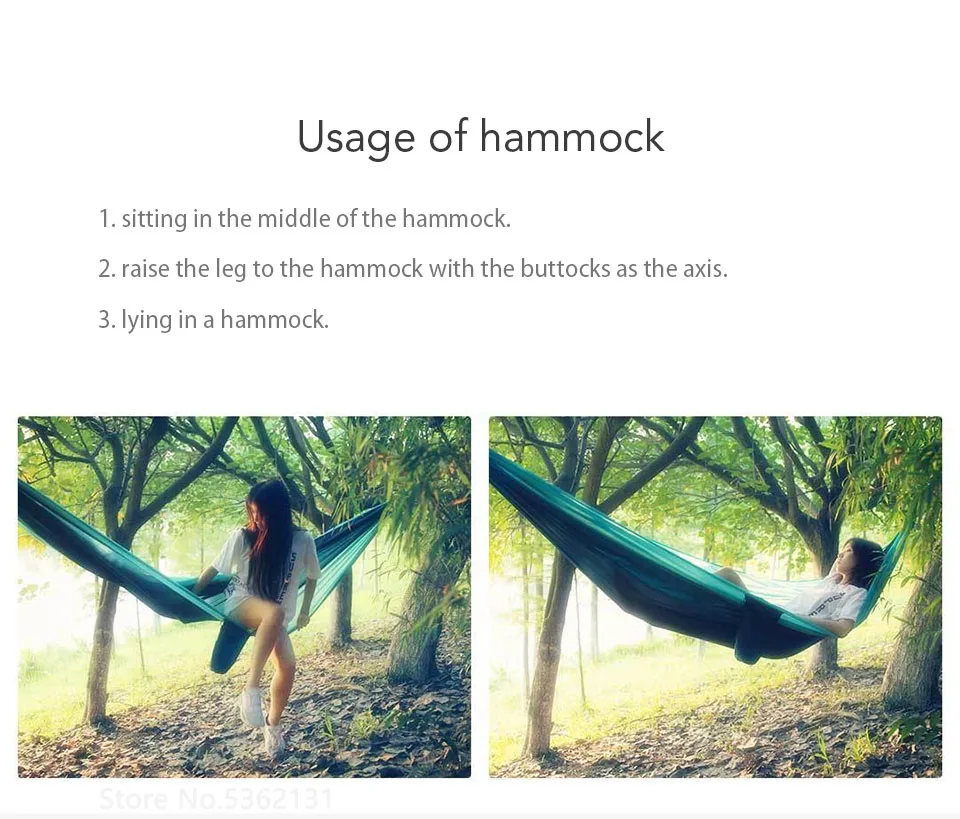 Легко чистится и быстро сохнет после намокания. Легкая фиксация, просто Зафиксируйте гамак двумя переплетными струнами и привяжите струну к деревьям или столбам. Материал парашютной ткани 210T, износостойкость, устойчивость к разрывам, непереносимость грязных, мягкие и удобные при лежании на нем. Светильник и удобный, предпочитаемый компанией tour pal и райдерами во время путешествий или лагеря на открытом воздухе. Легко носить с собой и упаковывать, можно сложить в прилагаемый мешок. Высокая устойчивость к растяжению с помощью 2 веревок типа Гай.