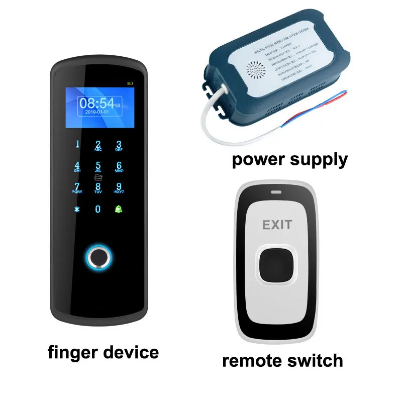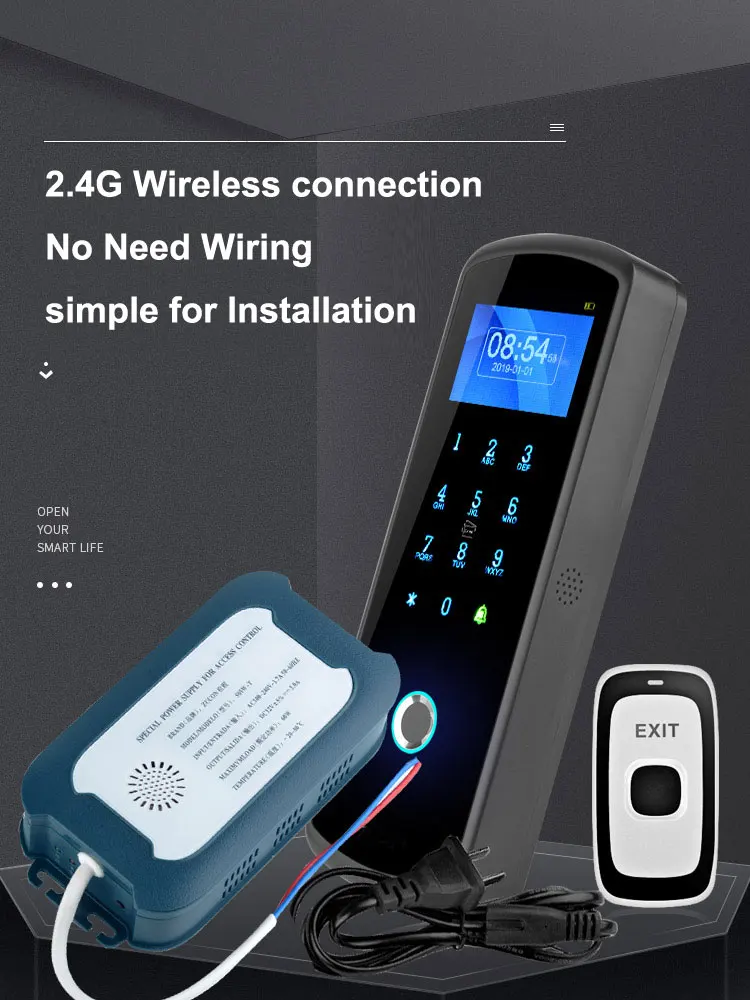 Kit1: беспроводное управление доступом + блок питания + кнопка беспроводного выхода + 10 брелоков