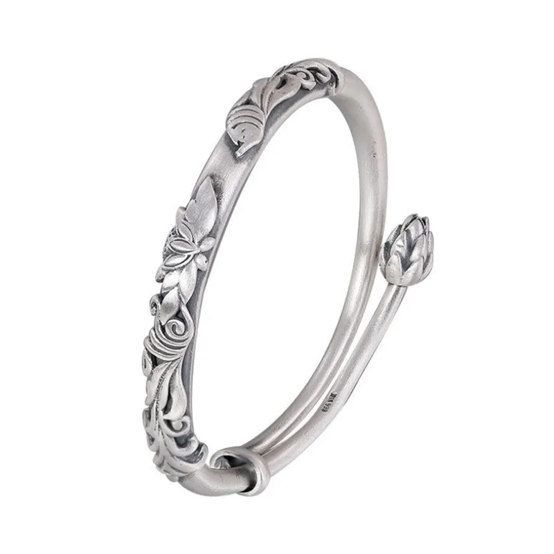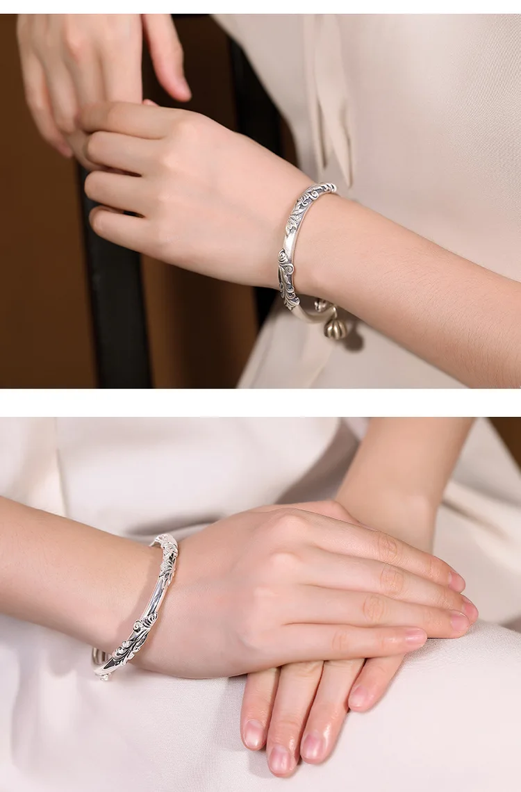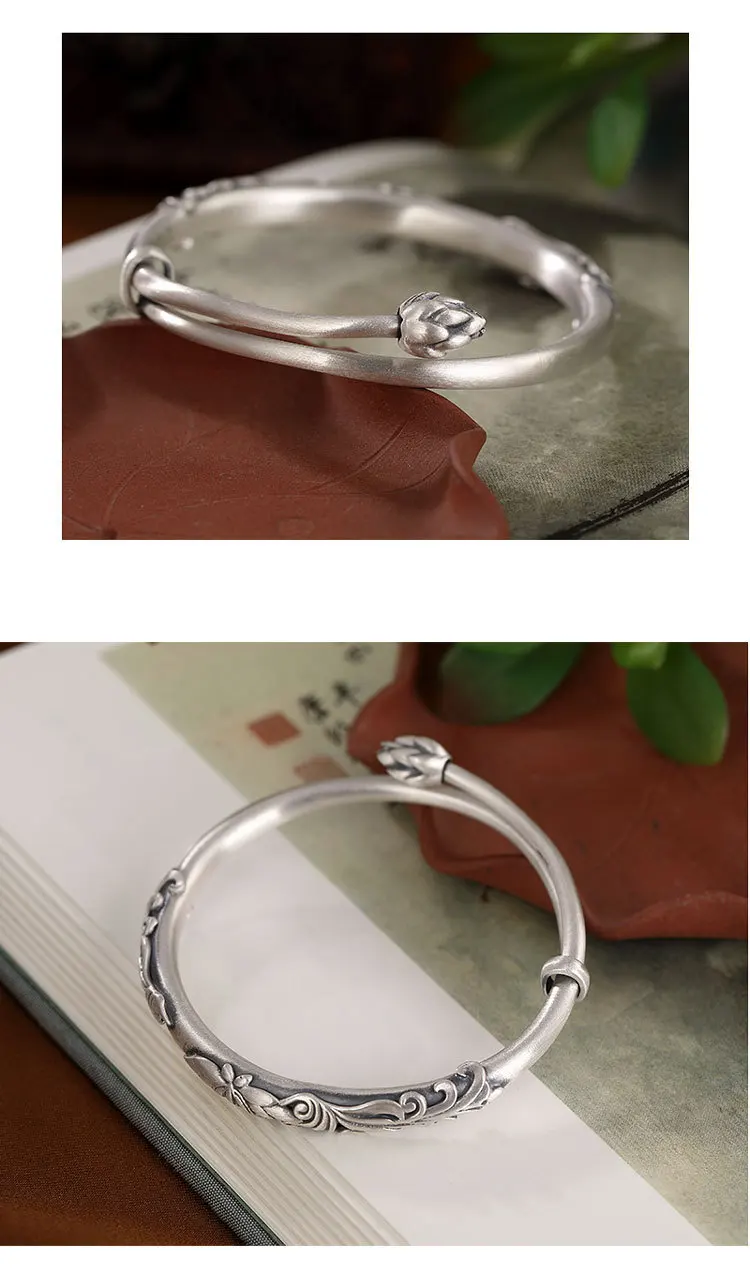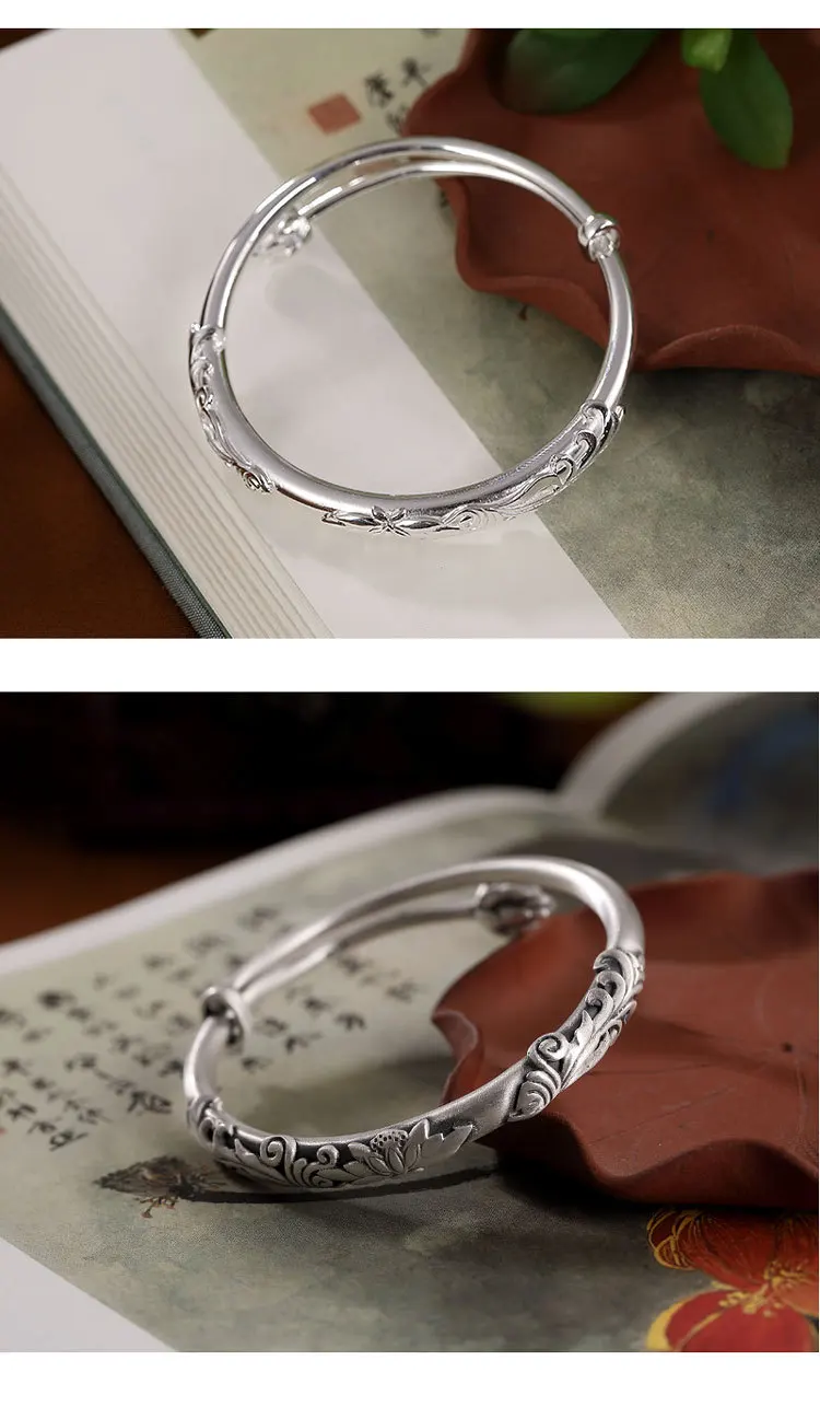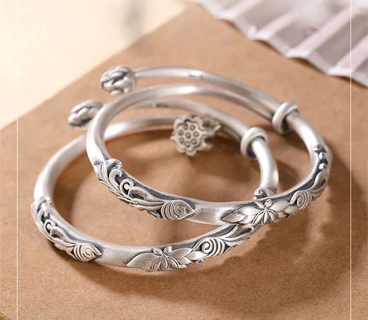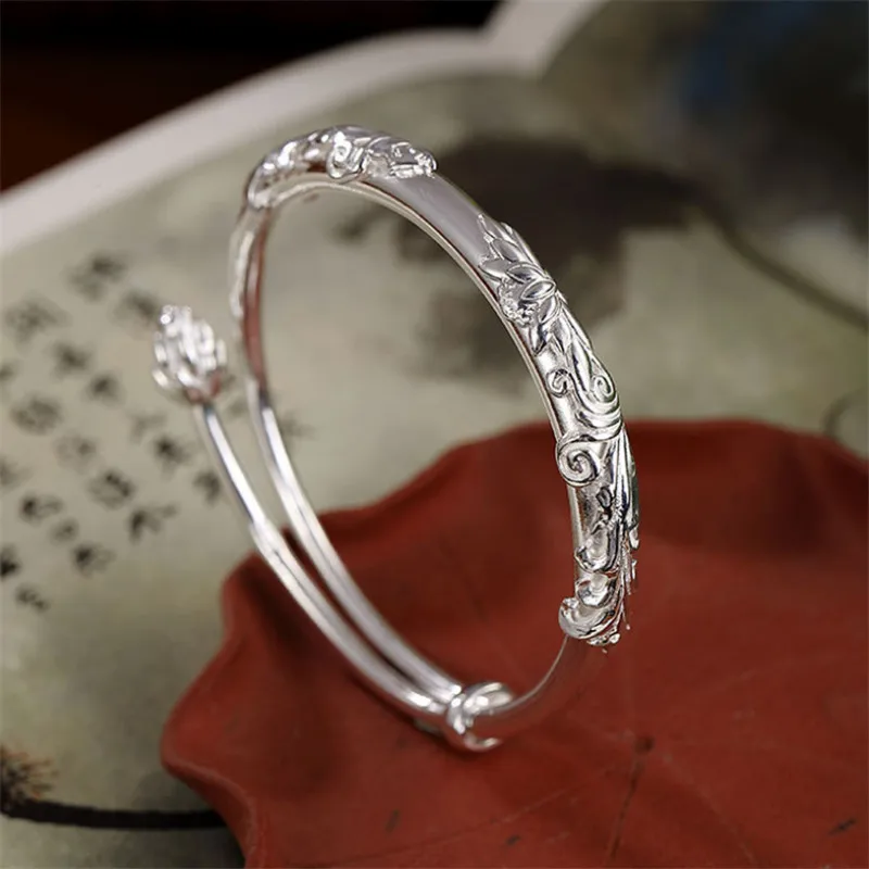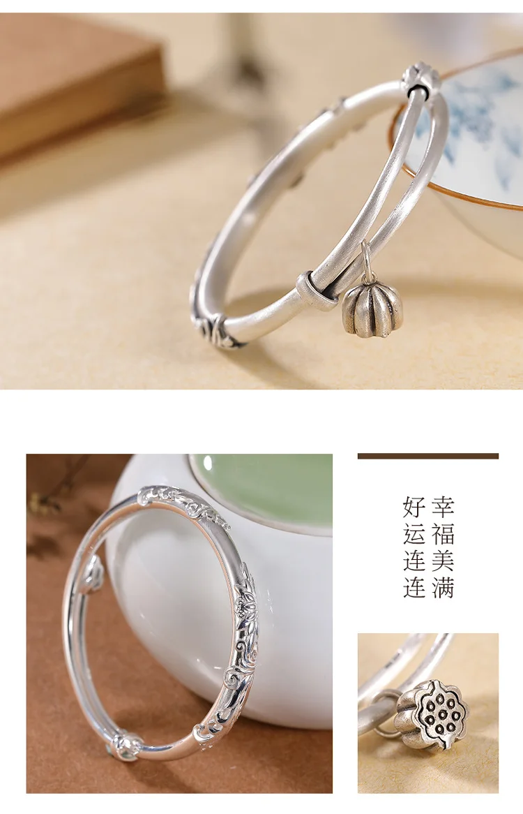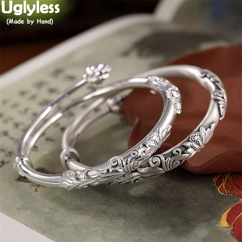 Uglyless 100% Настоящее 999 Чистое Серебро Браслеты для женщин тайские серебряные браслет с лотосом регулируемые пуш-ап Ретро ювелирные изделия бижутерия ручной работы