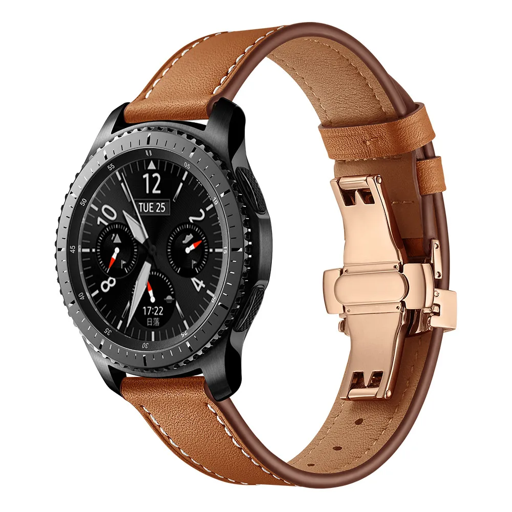 Кожаный ремешок с пряжкой-бабочкой для Samsung Galaxy Watch Active 2, ремешок для часов S3S2 Galaxy Watch 46 мм, 42 мм, универсальный ремень 20 мм, 22 мм