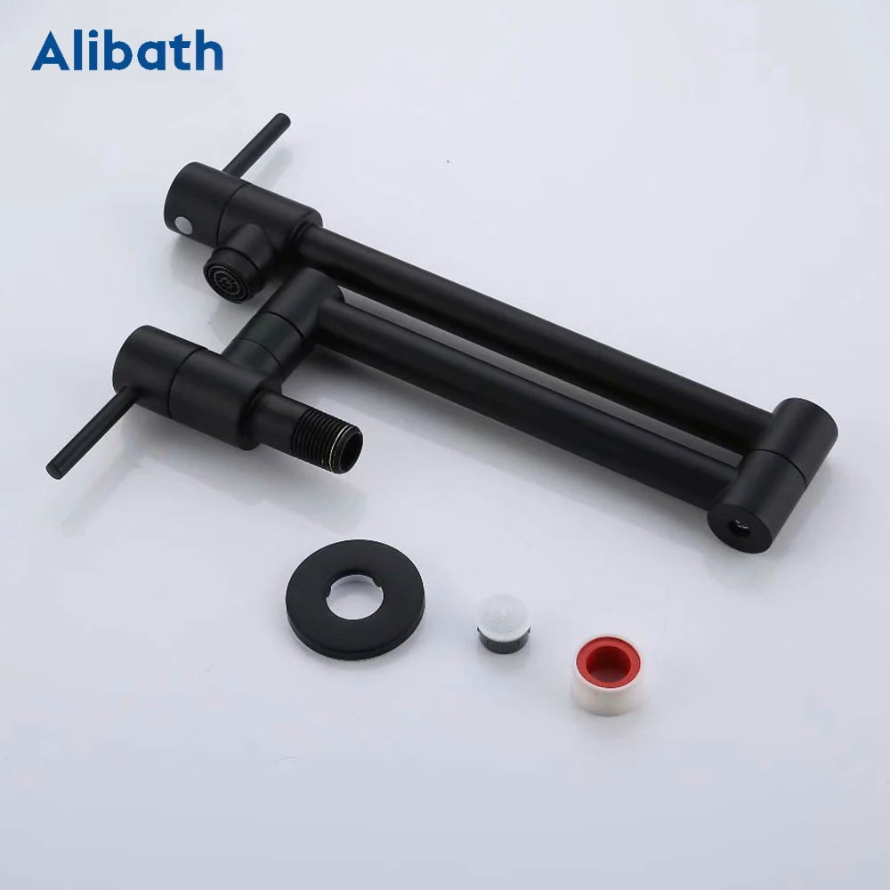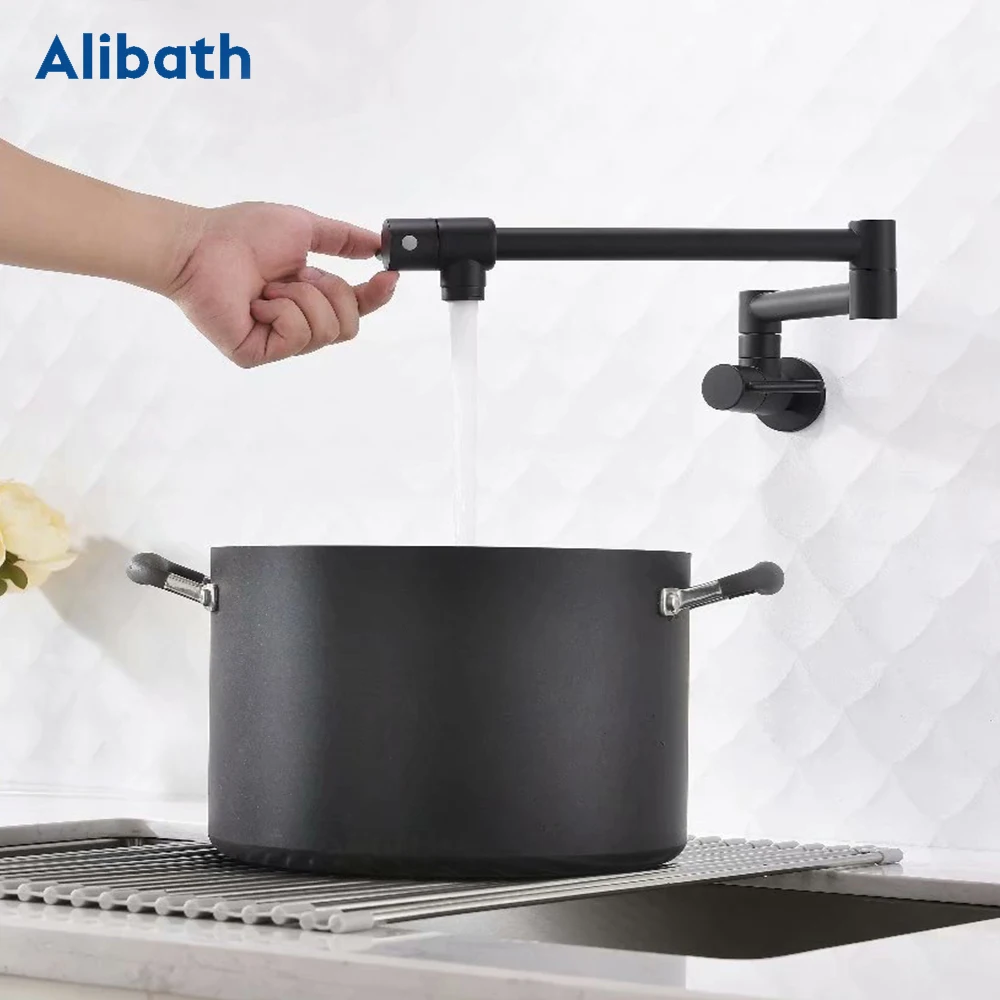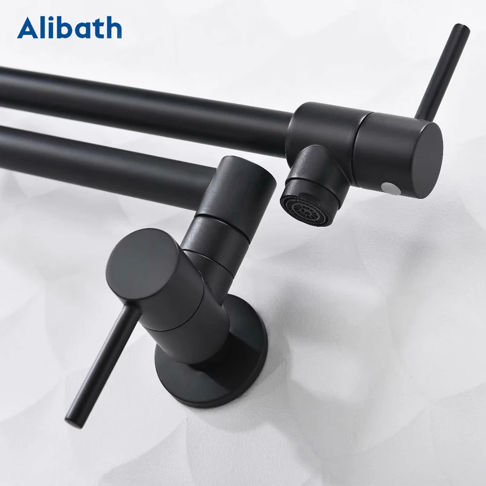 Смеситель для наполнителя кастрюль из 100% твердой латуни, настенный кухонный кран с одним холодным одним отверстием, черный никелевый смеситель Alba.