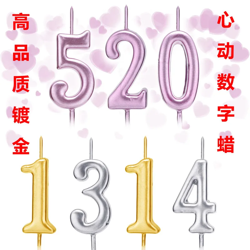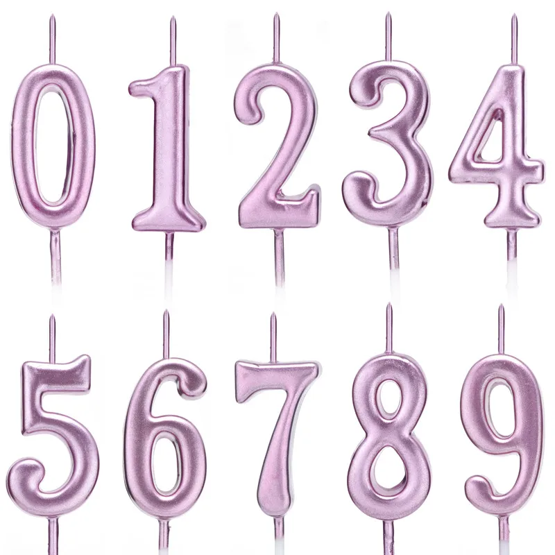Детские украшения для дня рождения, высококачественные Позолоченные цифровые свечи, розовые 0-9 свечи для дня рождения