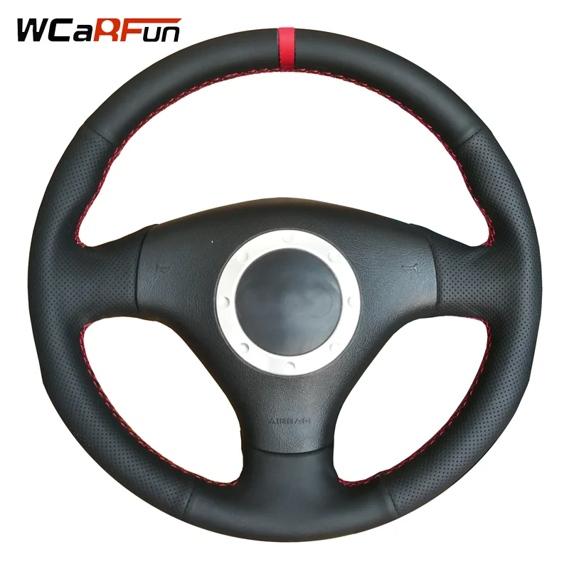 Чехол на руль WCaRFun, чехол для Audi A2, 8Z, A3, 8L, Sportback, A4, B6, Avant, A6, C5, A8, D2, TT, 8N, S3, S4, RS4, RS6, черный кожаный, красный