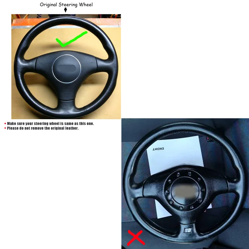 WCaRFun Black Leather Steering Wheel Cover for Audi A2 8Z A3 8L Spo...