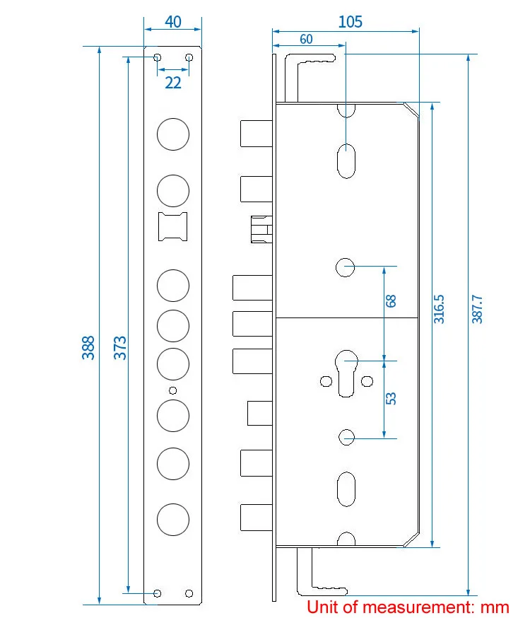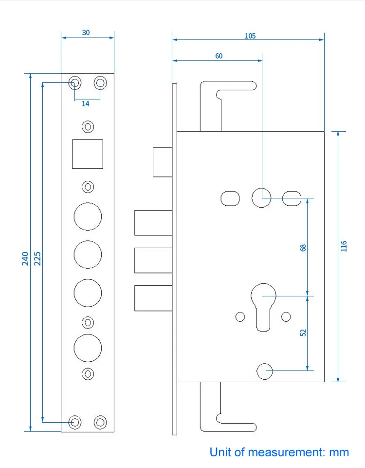 Корпус замка из нержавеющей стали для охранной двери, размер шага 6068, для интеллектуального отпечатка пальца, подъема вверх, блокировки и отжима, открытия