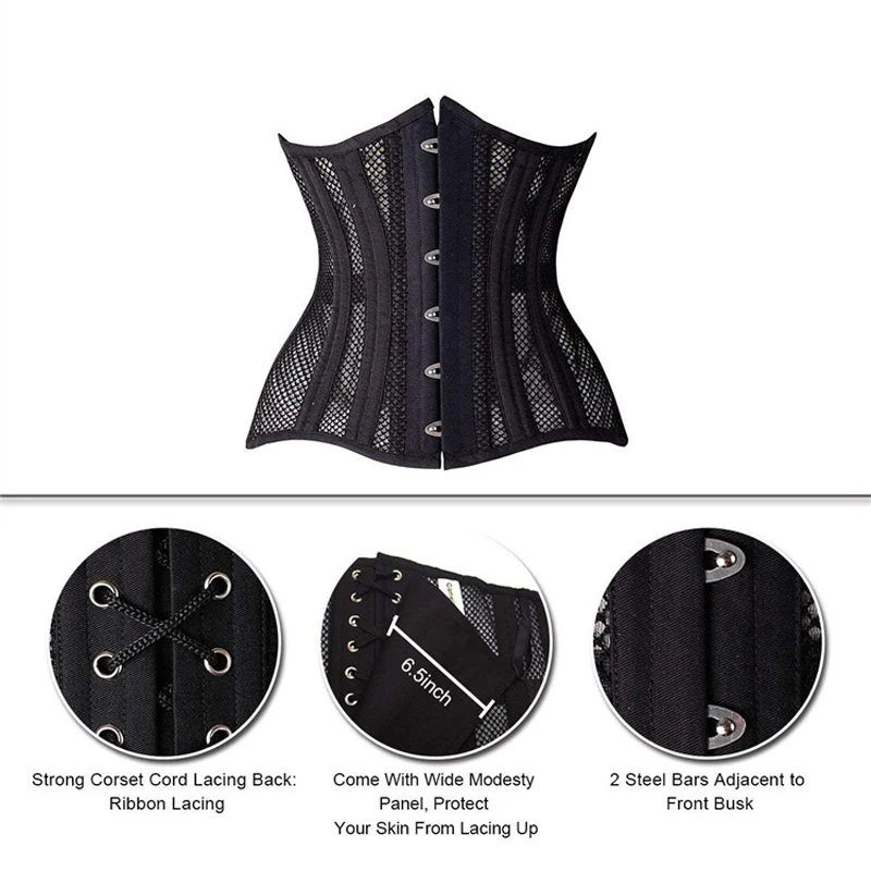 Женский двойной корсет с 24 стальными косточками, сетчатый дышащий ...