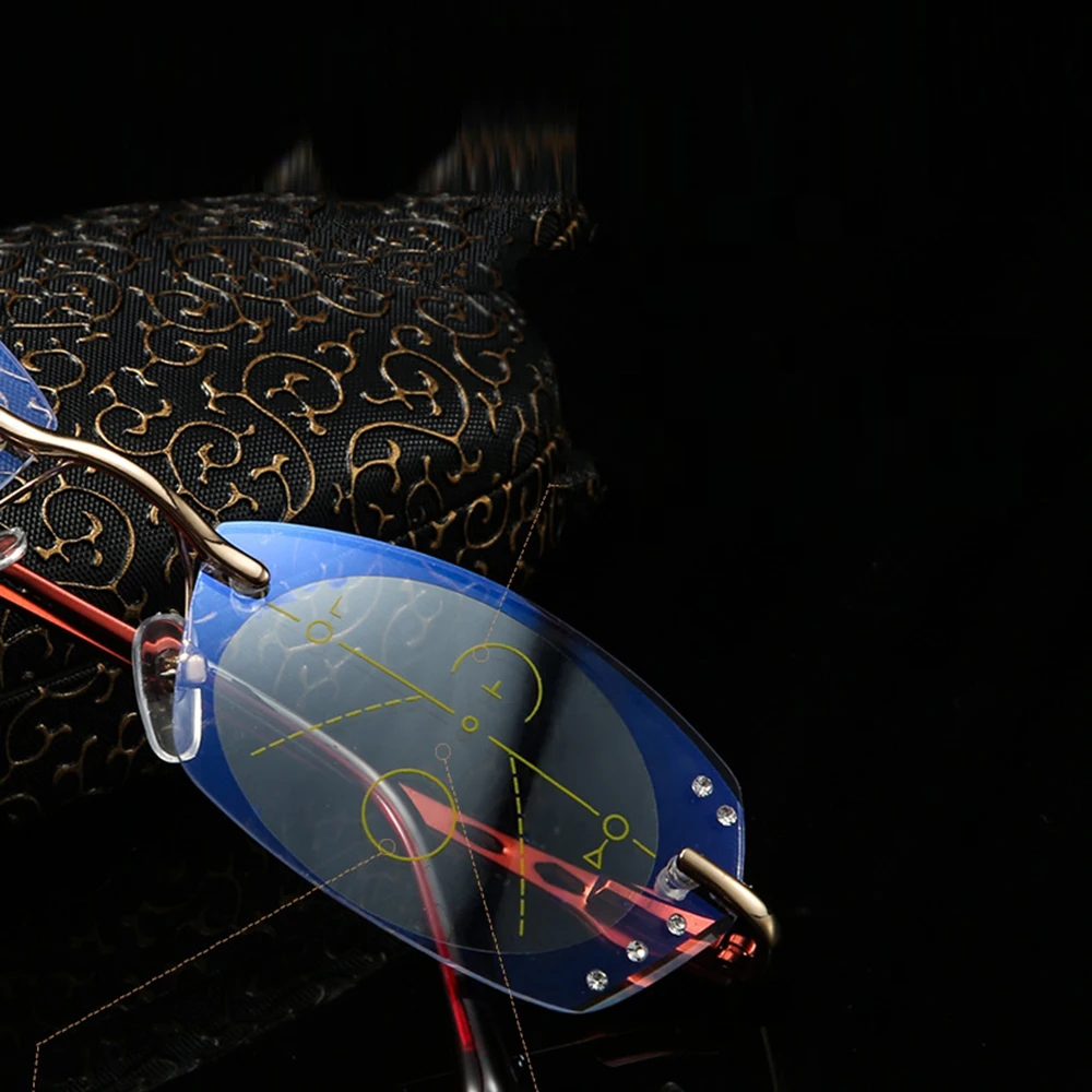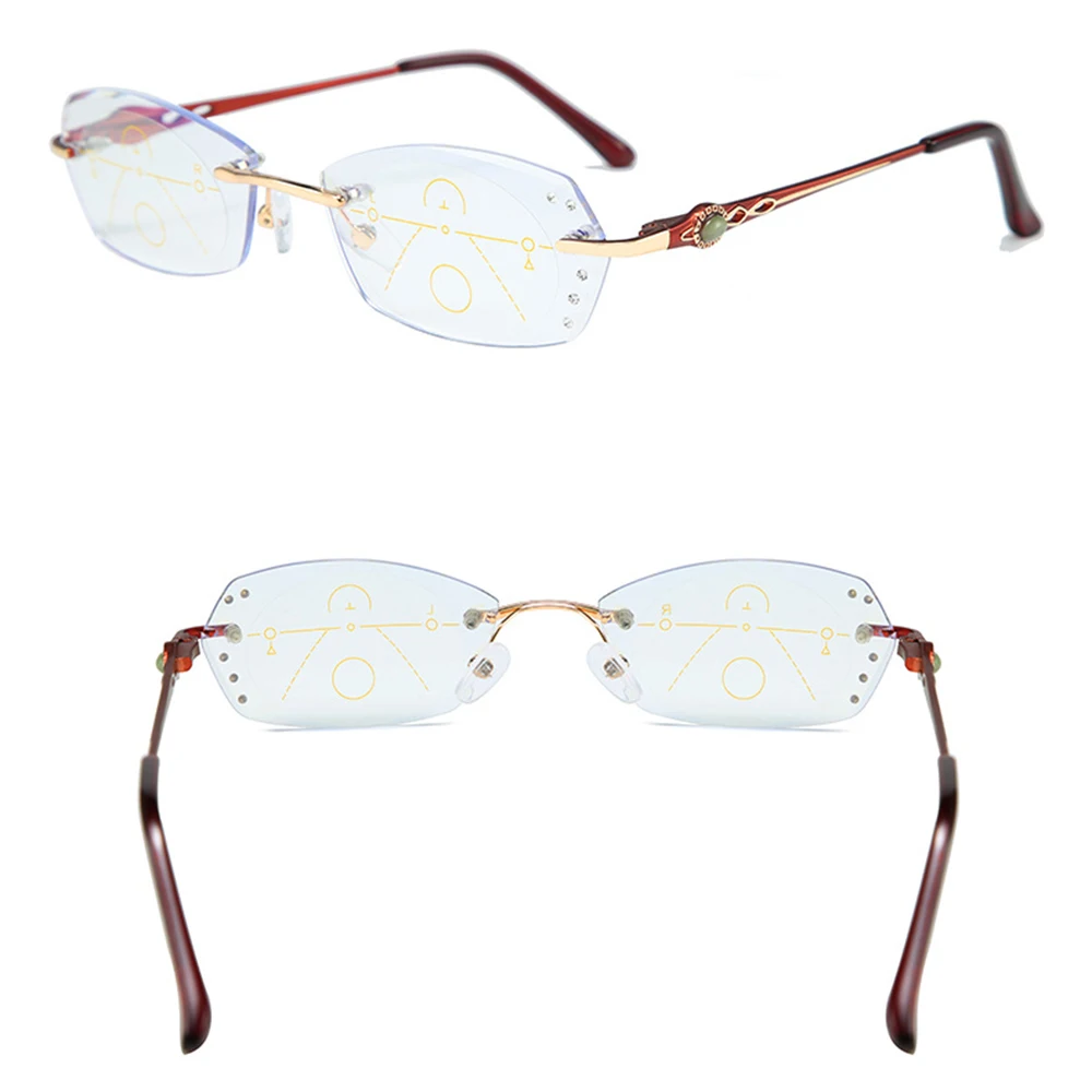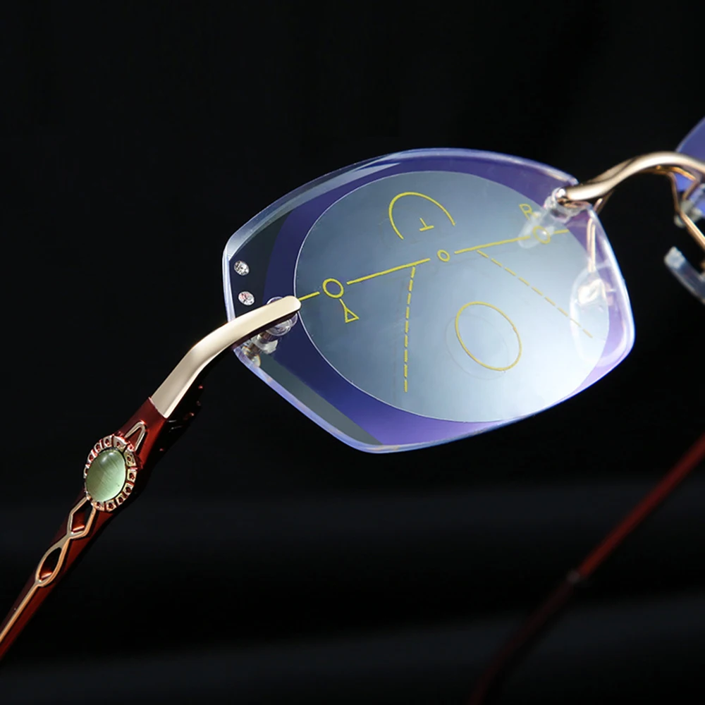 Ульсветильник кие очки без оправы из титанового сплава, роскошные женские очки для чтения с прогрессивным мультифокусом, дополнительные 75 100 125 150 175 200 до 400