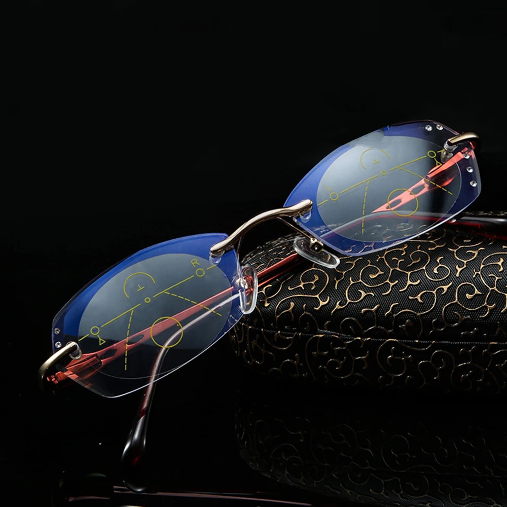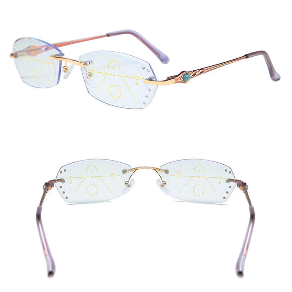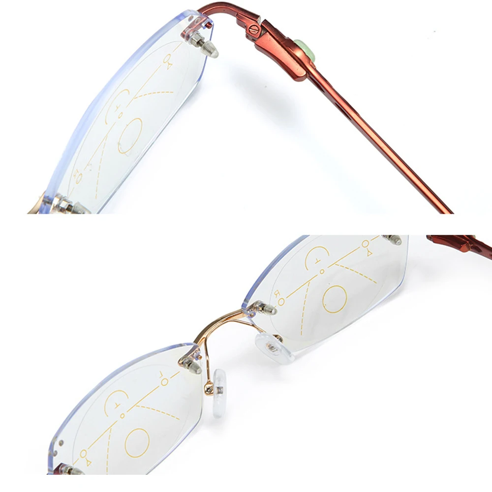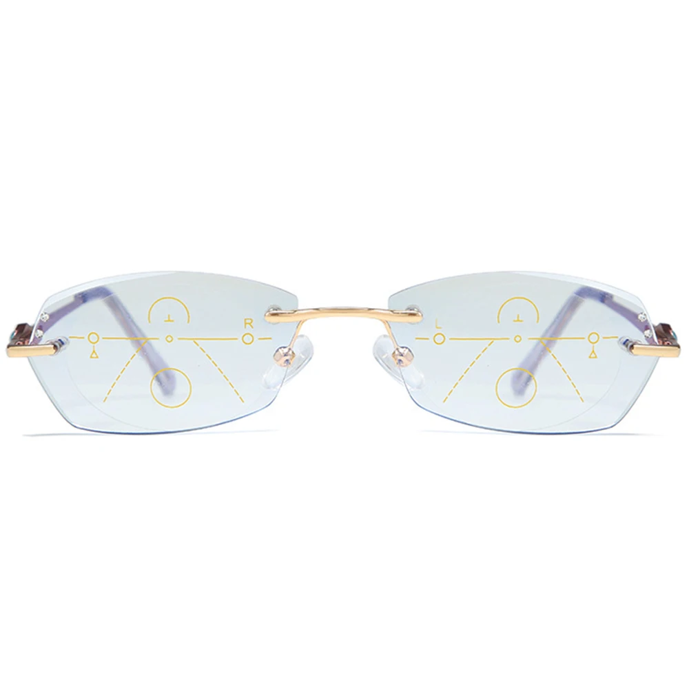Ульсветильник кие очки без оправы из титанового сплава, роскошные женские очки для чтения с прогрессивным мультифокусом, дополнительные 75 100 125 150 175 200 до 400