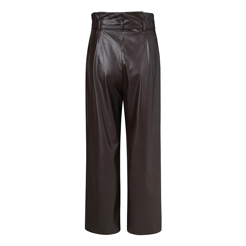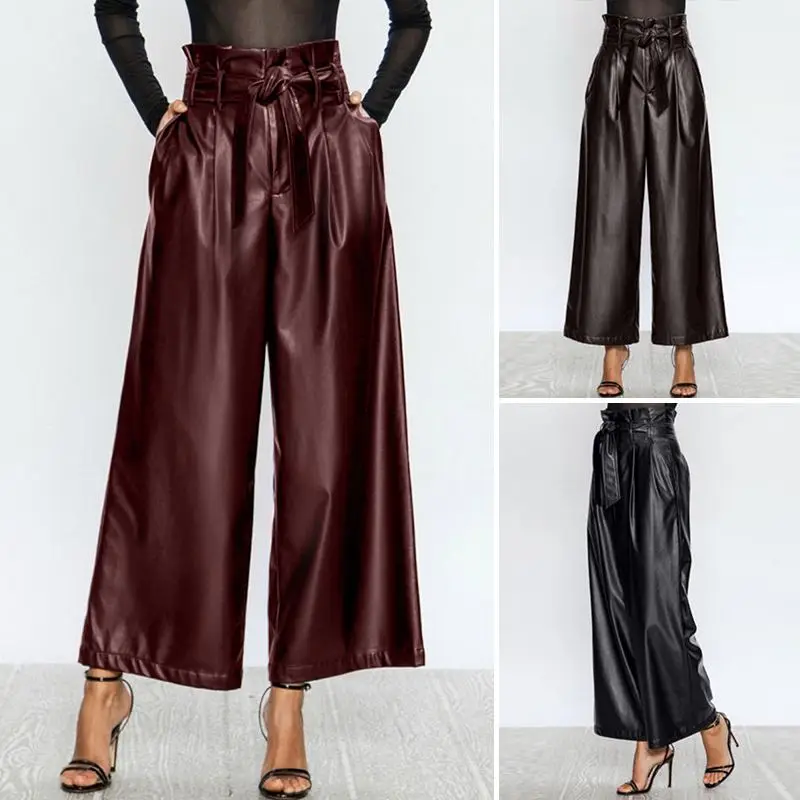 Женские брюки с широкими штанинами ZANZEA 2022, стильные брюки из искусственной кожи Ruflle с высокой талией, брюки палаццо, Женские однотонные Большие размеры
