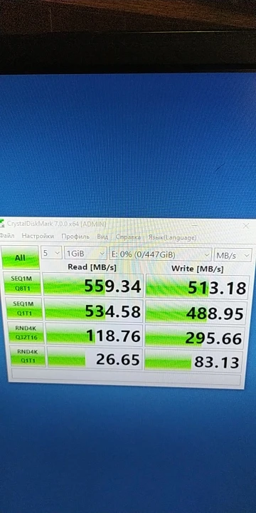 Отличный диск! Беру диски этого производителя и в этом магазине уже далеко не первый раз. На данный момент проблем с ними не испытывал. Радует низкая цена при хороших характеристиках! Конкретно этот вариант на 512 Гб мне достался по невероятно низкой цене - около 2700 руб, спасибо продавцу за такую скидку. Даже не верилось, что такое возможно! Но прошло совсем немного времени и мне пришло сообщение о том, что заказ можно забрать в ближайшей "Пятерочке". Диск прибыл в фирменной упаковке с неповрежденными наклейками. Размер и скорости соответствуют заявленным. Скриншоты прилагаю. Отличные диска! Отличный продавец! Рекомендую!