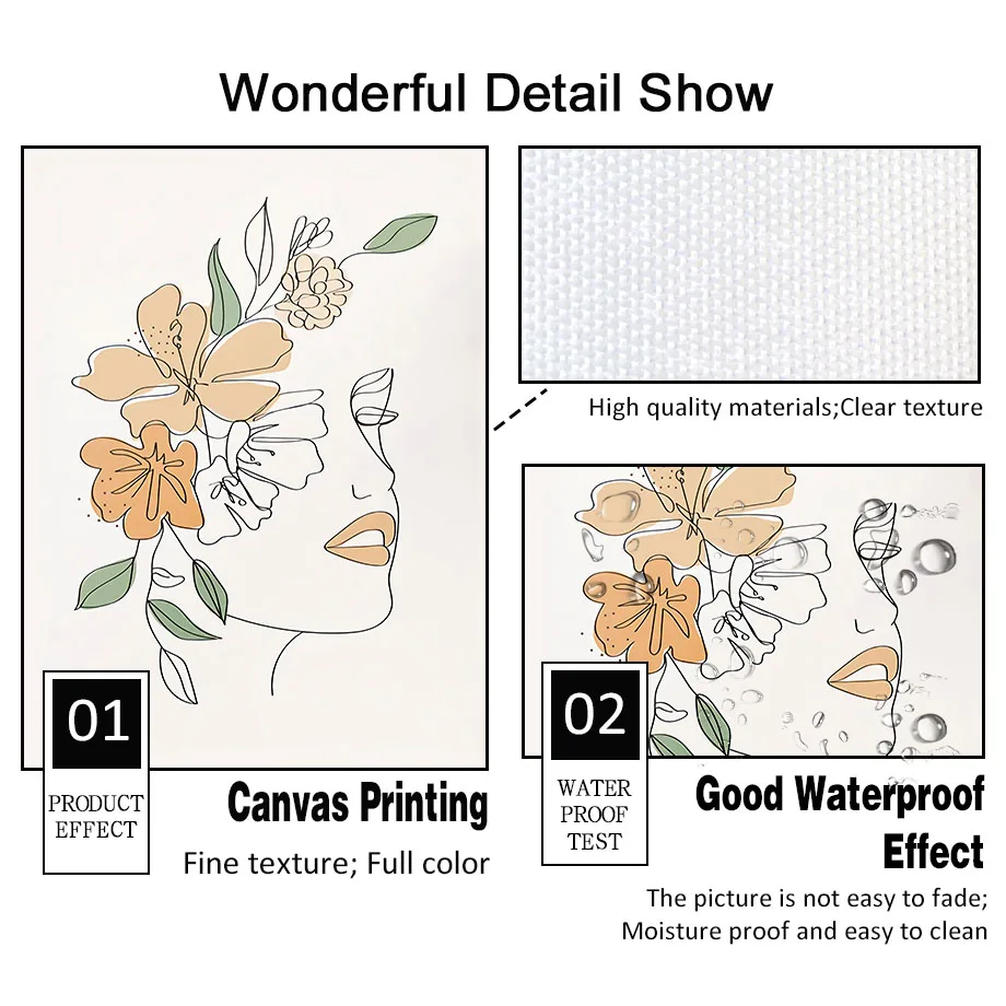 Абстрактный цветок женщина линия лица оранжевый художественный холс...